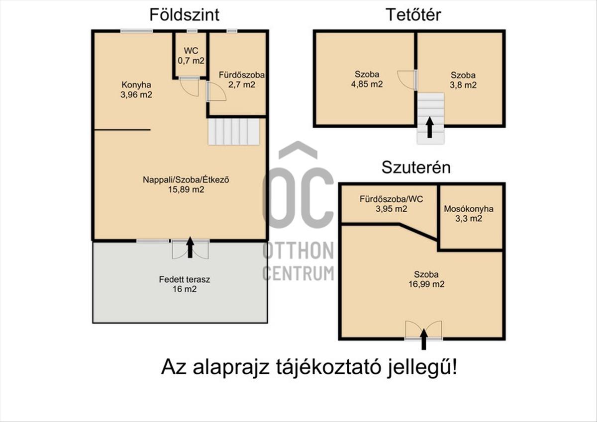 - Földszint + tetőtér, és külön bejáratú szuterén rész