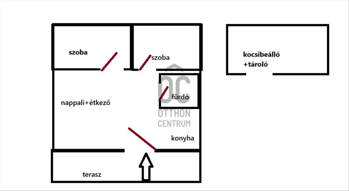 -3 szoba, fürdő, konyha, terasz