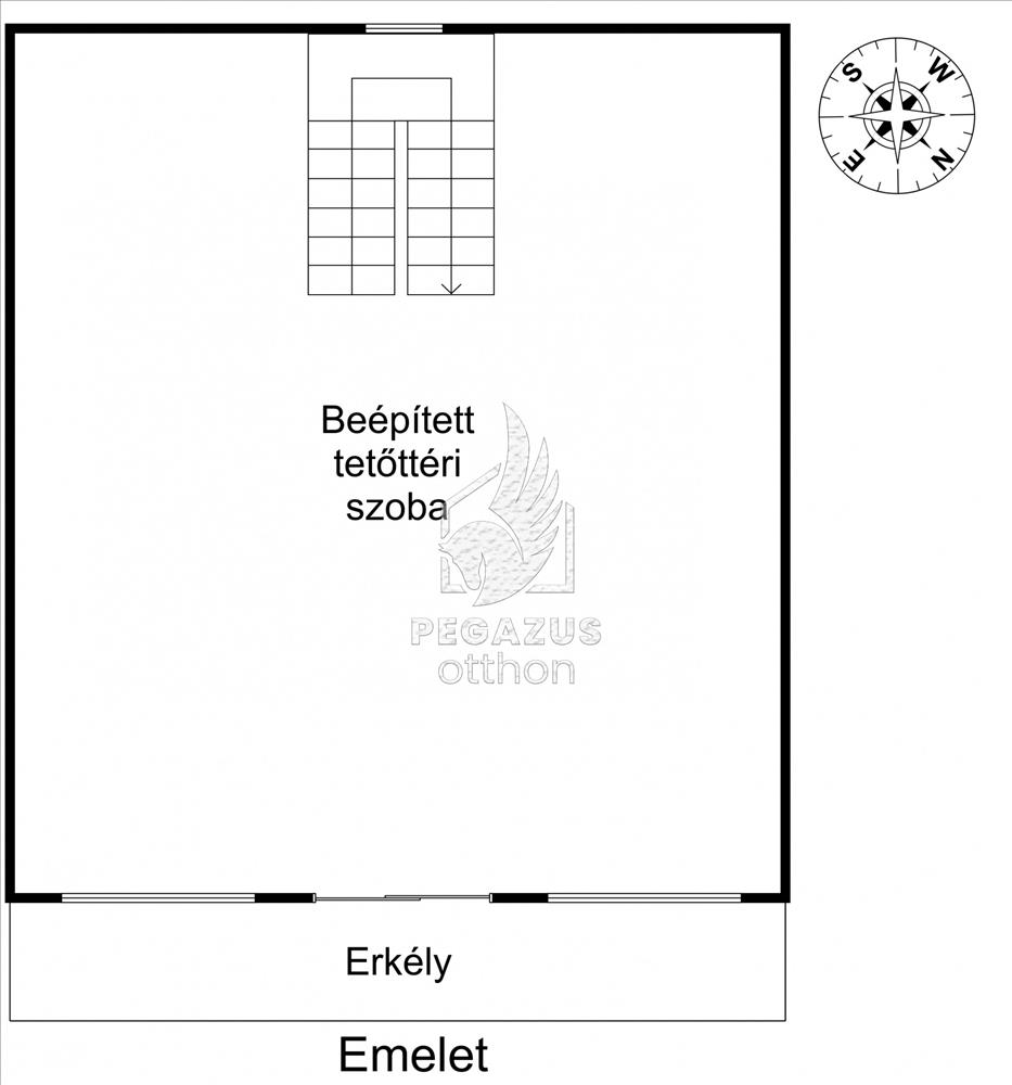 Felső szint (beépített tetőtér): Egy tágas, nagy tér, melyhez erkély is tartozik, tökéletes kilátással a környező zöldövezetre.