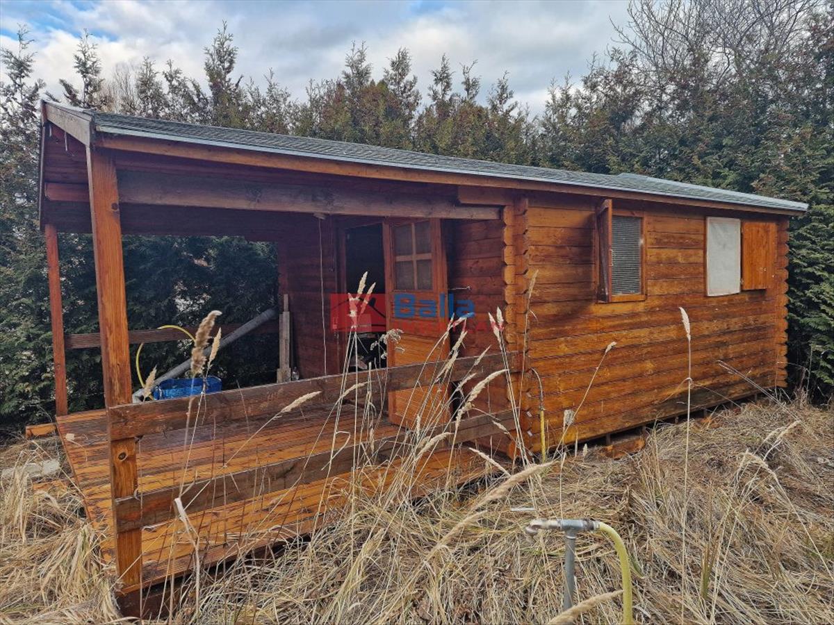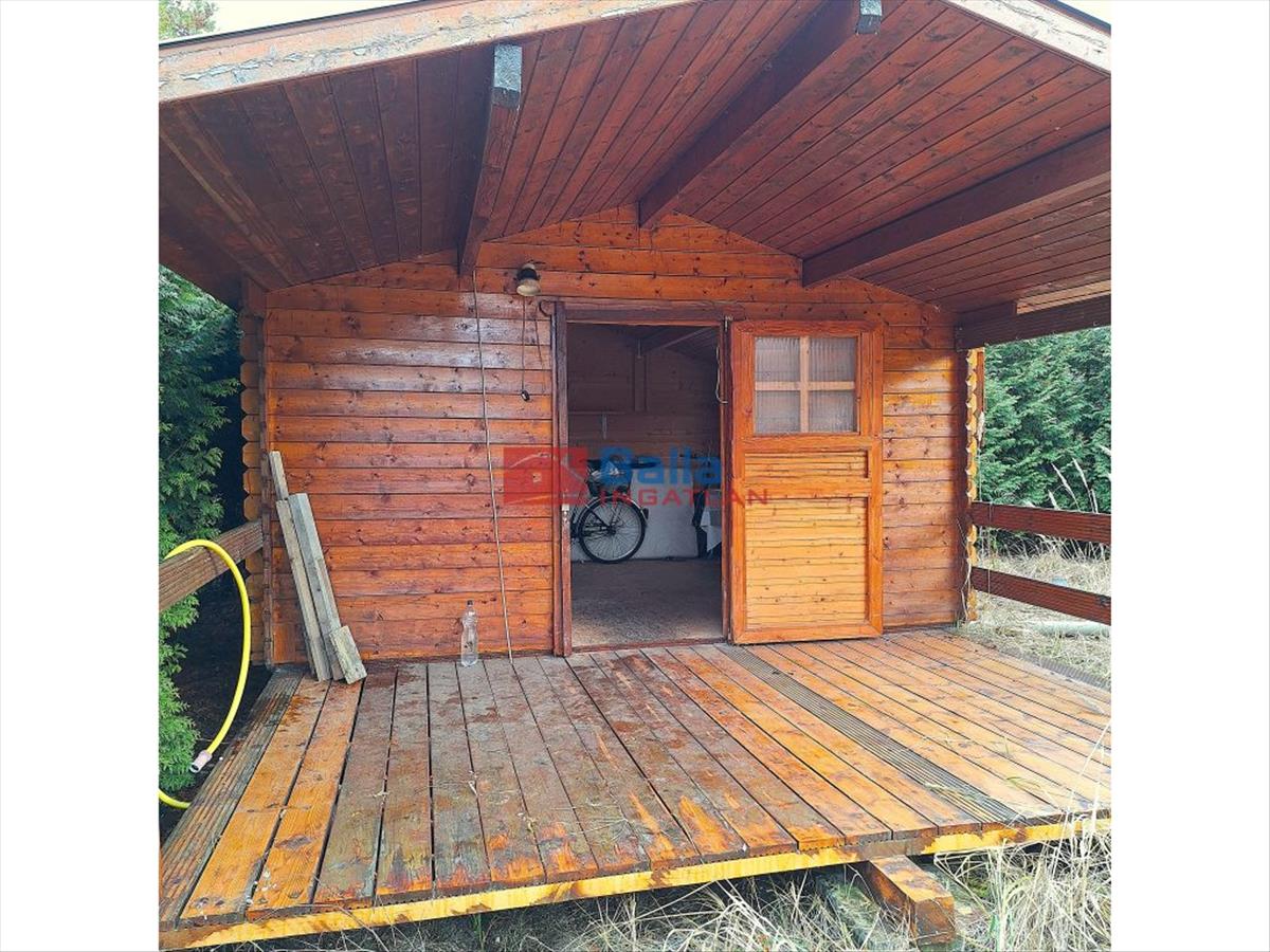 A telek kerítéssel körbekerített, 12 m2-es faház található rajta terasszal.