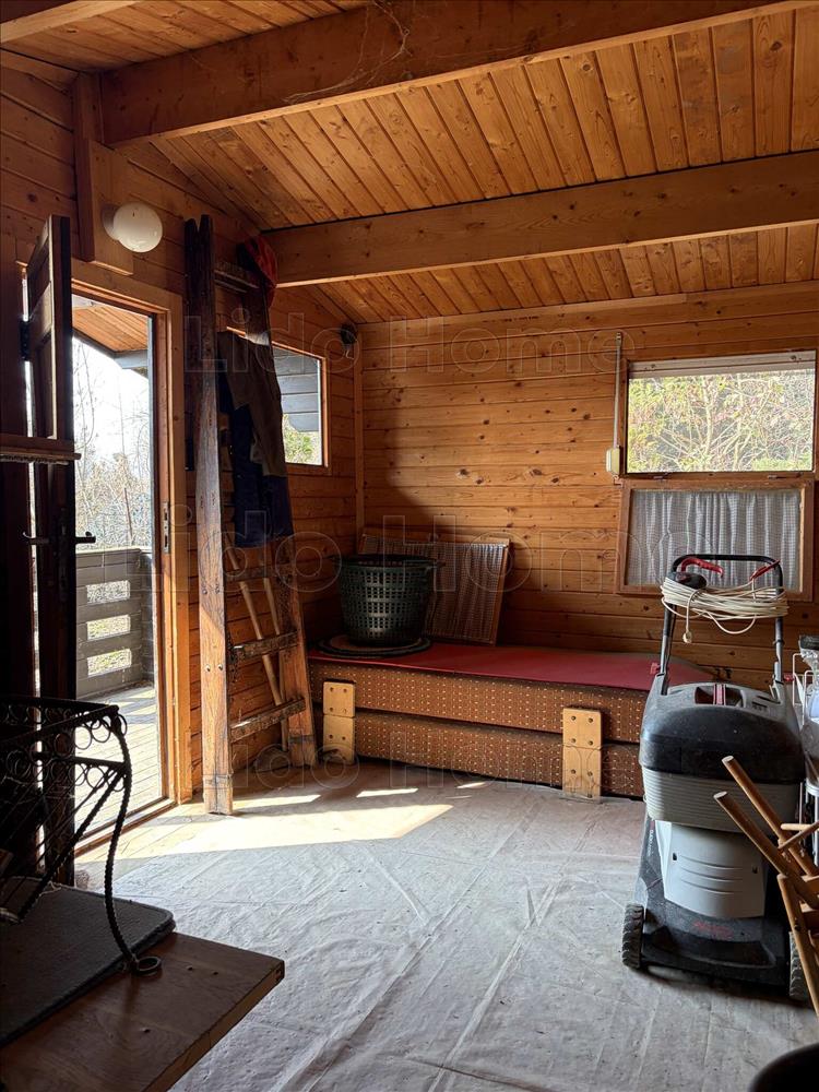 A kert alsó részében – lépcsőn megközelíthetően – egy 31 m² alapterületű, teraszos faház található, amely jelenleg szerszámtárolóként van nyilvántartva, ugyanakkor kialakítása alapján nyaralóként is használható.