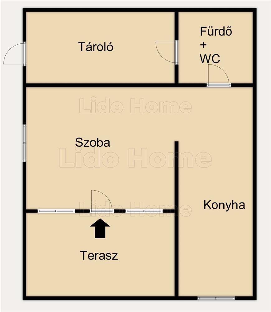 -1 szoba, étkezőkonyha, zuhanyzós, WC-s fürdőszoba villanybojlerrel, tárolóhelyiség