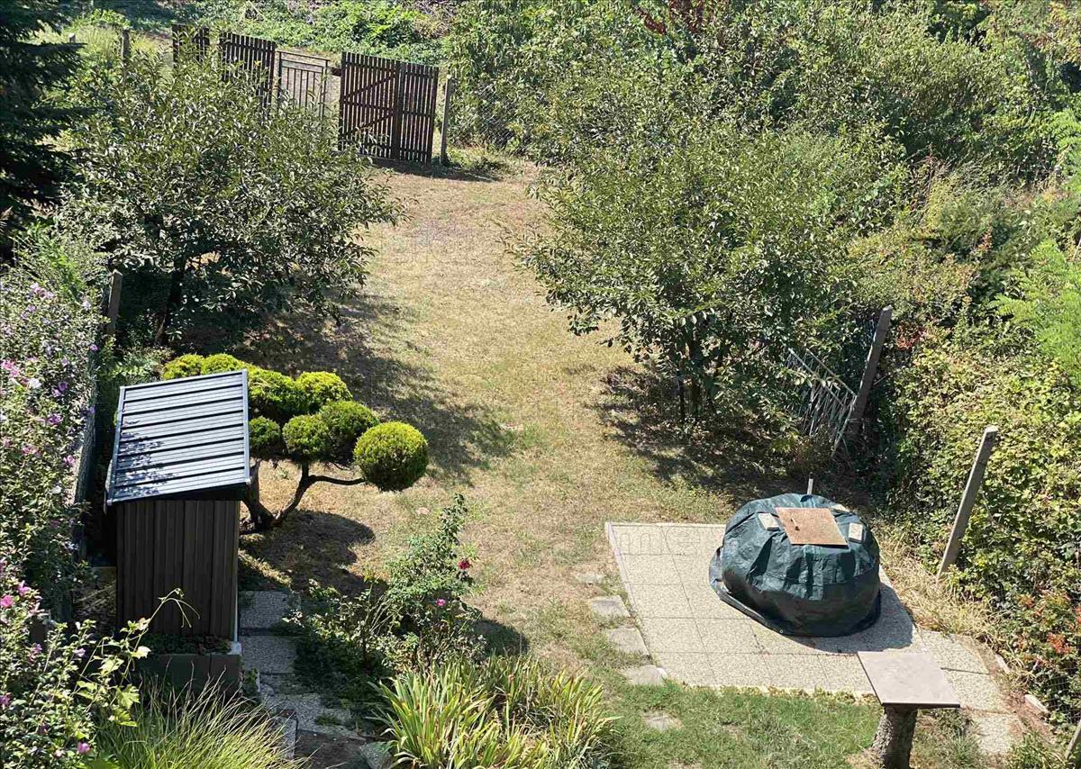 A kertben van egy fém szerszámtároló, valamint egy 6 személyes műkő bográcsozó, grillező.
