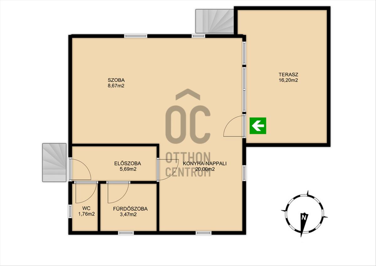 - 57 m2-es lakóterületű, + 16m2 fedett terasz