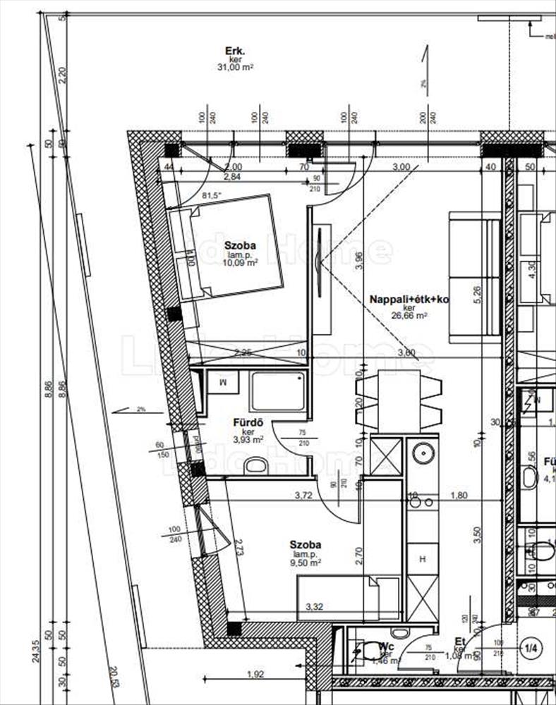 -2. emeleti, 2 szoba+nappalis lakás, 31 m2 erkéllyel