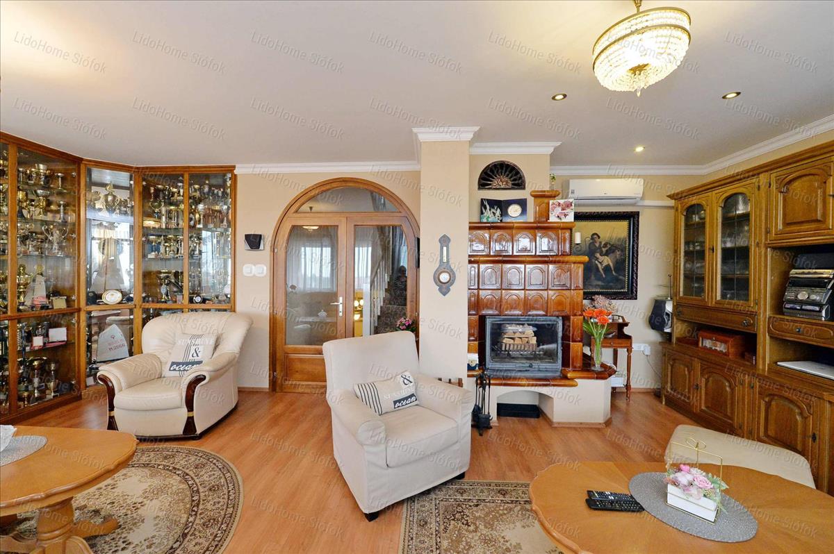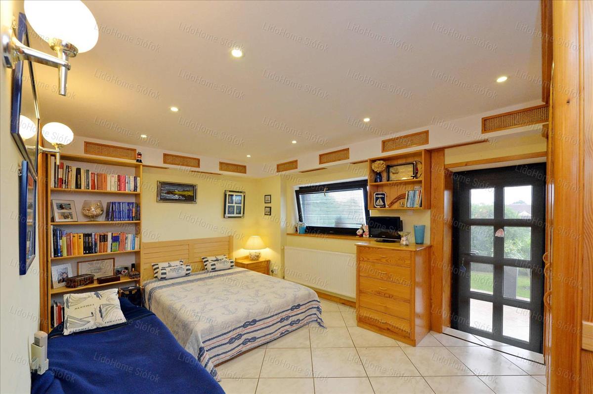 6 Szoba, - ebből 2 szoba + fürdő akár önálló lakrészként is használható – hatalmas teraszos nappali, 3 fürdőszoba, külön wc, kamra. Mind a teraszról, mind az erkélyekről szép, örök balatoni panoráma.