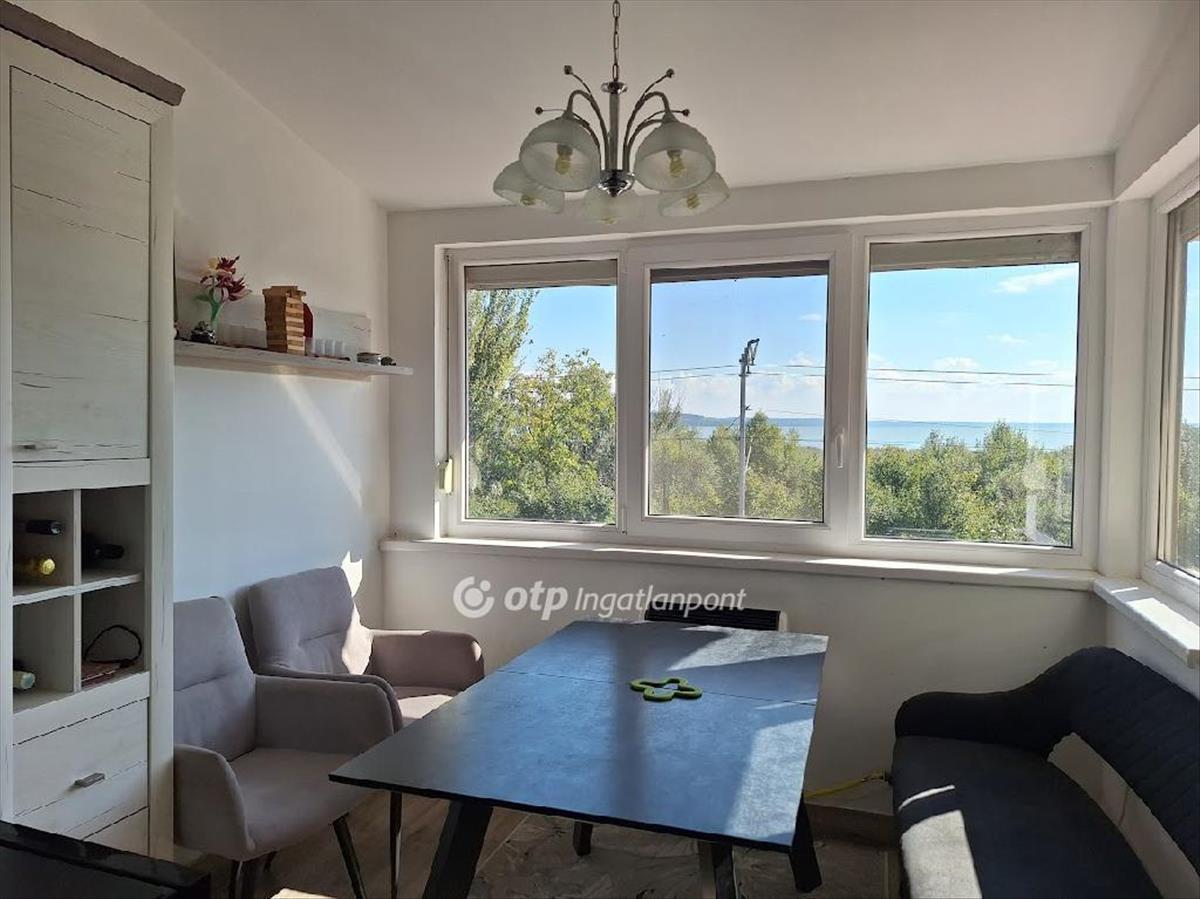 Ez a 708 m²-es, parkosított telken álló 52 m²-es nyaraló örök, zavartalan balatoni panorámával rendelkezik. a telek a domboldalon, egy forgalommentes utca legvégén található – a kilátást semmi sem zavarja, hiszen alatta már csak a vasútvonal és a nádas húzódik.
