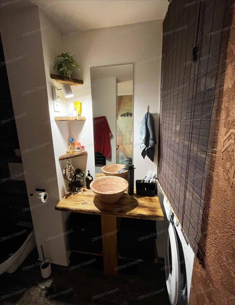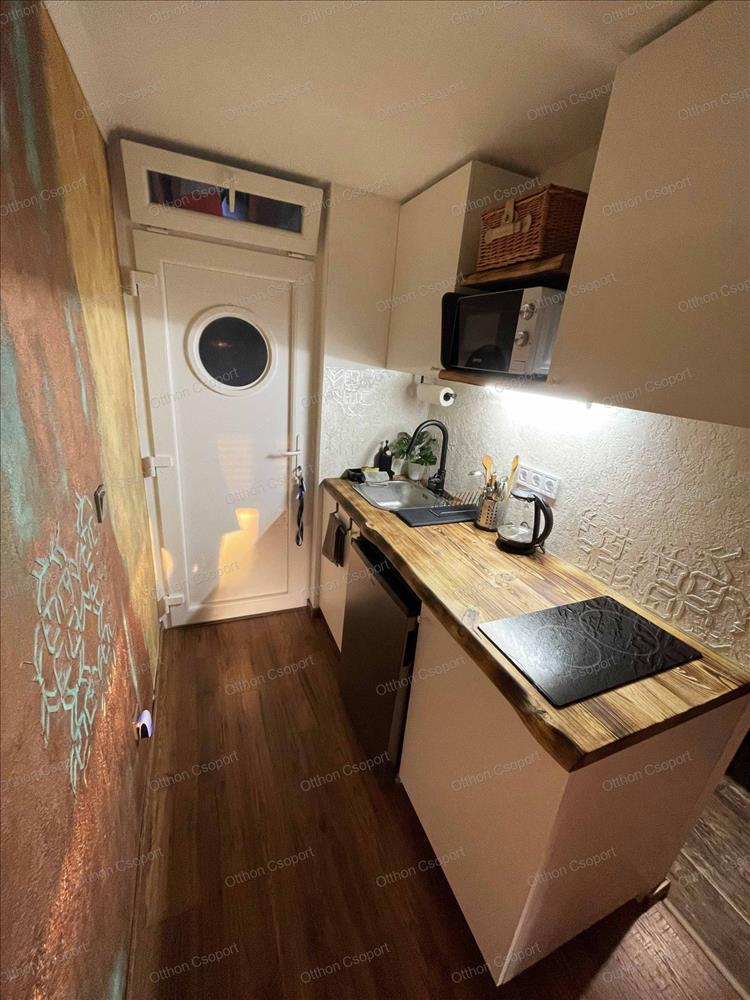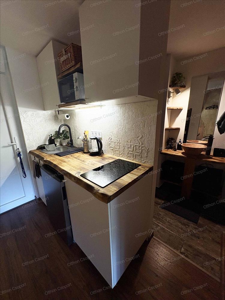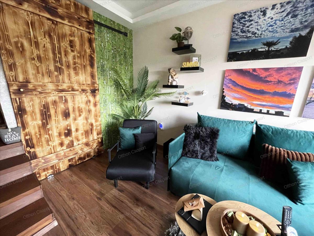 Egyedi tervezésű, prémium design-apartman eladó Balatonalmádi Káptalanfüred részén társasüdülőben, a teraszról balatoni panorámával, gondozott, közös használatú kerttel, napozóval, grillezővel, kiülővel, közúton 600 méterre a hangulatos, családias Káptalanfüred strandtól, gyalog se több néhány percnél. Saját, zárható, árnyékolt kocsibeállóval, parkolóval közvetlenül a ház mellett (amely részét képezi az adásvételnek). Műszakilag tökéletesen felújított és tervező által megdizájnolt állapotban, tehát teljesen új elektromos és vízhálózattal, teljes felületén elektromos fűtőszálas padlófűtéssel, szobatermosztáttal. Dél-keleti tájolású, szépen árnyékolt, földszinti nyaraló, a teraszról kijárással a gyönyörű kertre, melyet kertész gondoz. Alapterülete 25, 3 m2, egy nappali/háló kihúzható kanapéval, + egy vendég-fotelágy, 3 személy részére kényelmes alvási lehetőséggel, ill. 3 Személyre szabott ebédlőasztallal, tágas gardróbbal. Teljeskörűen berendezett, új konyha rész új háztartási gépekkel, önálló fürdőszoba tusolóval, wc-vel, 50 literes bojlerrel. Terasz 5 m2, 2+2 személy számára kiülési lehetőséggel, balatoni panorámával. a legtöbb bútor, ill. Berendezés egyedileg tervezve és gyártva borovi fenyőből a lehető legoptimálisabb helykihasználással. Csodás panoráma nyílik bentről is a nappaliból a Balatonra a hatalmas üvegfelületen keresztül. Az árban foglaltatik az összes berendezési tárgy és bútor okostévével, hűtőszekrénnyel, mosógéppel, dísztárgyakkal, mindennel együtt. Kiadásra, szállásoltásra, turizmusra remek megtérülésű befektetésként, avagy saját használatra pihenésre, töltődésre, kikapcsolódásra egyaránt kitűnő lehetőség. Ára: 49 M Ft. 06209730443 Igény esetén örömmel megmutatom személyesen, hívjon bátran. Hitel.hu - Hasonlítsa össze a bankok lakáshitel ajánlatait