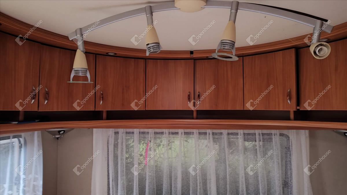 A rajta lévő szendvicspaneles, szigetelt épület 27-négyzetméteres. Egy szobát, nappalit, konyhát, fürdőszobát valamint nagyméretű kiülős fedett teraszt foglal magába. Fűtéséröl infrapanel gondoskodik így egész évben használható a ház. Nyílászárók szintén szigeteltek. Udvara parkosított, ahol kőből épített szalonnázó-grillező is helyet kapott. Különálló igényes, fából készült szerszám tároló a ház mögött. Valamint egy Hobby típusú minden igényt kielégítő lakókocsi extra belsővel. Ha több helyre lenne szükség.