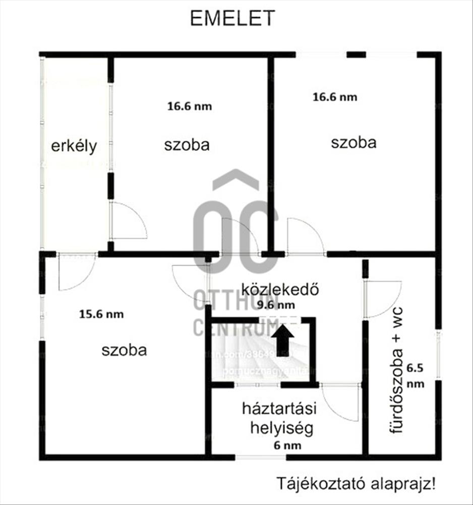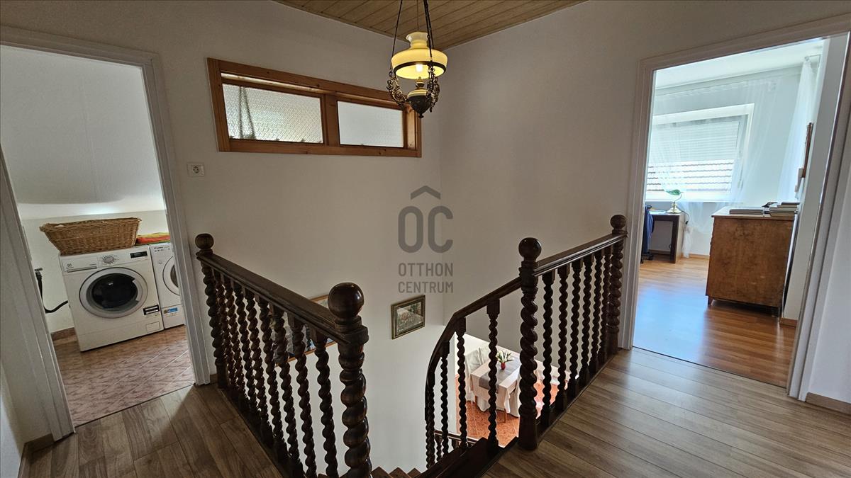 Emelet: 3 hálószoba, fürdőszoba WC-vel, mosókonyha, erkély, amely két hálószobából is megközelíthető.