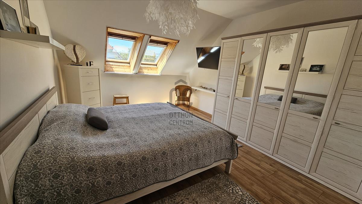 Műanyag nyílászárók, a tetőtérben újszerű Velux tetőablakok biztosítják a természetes fényt.