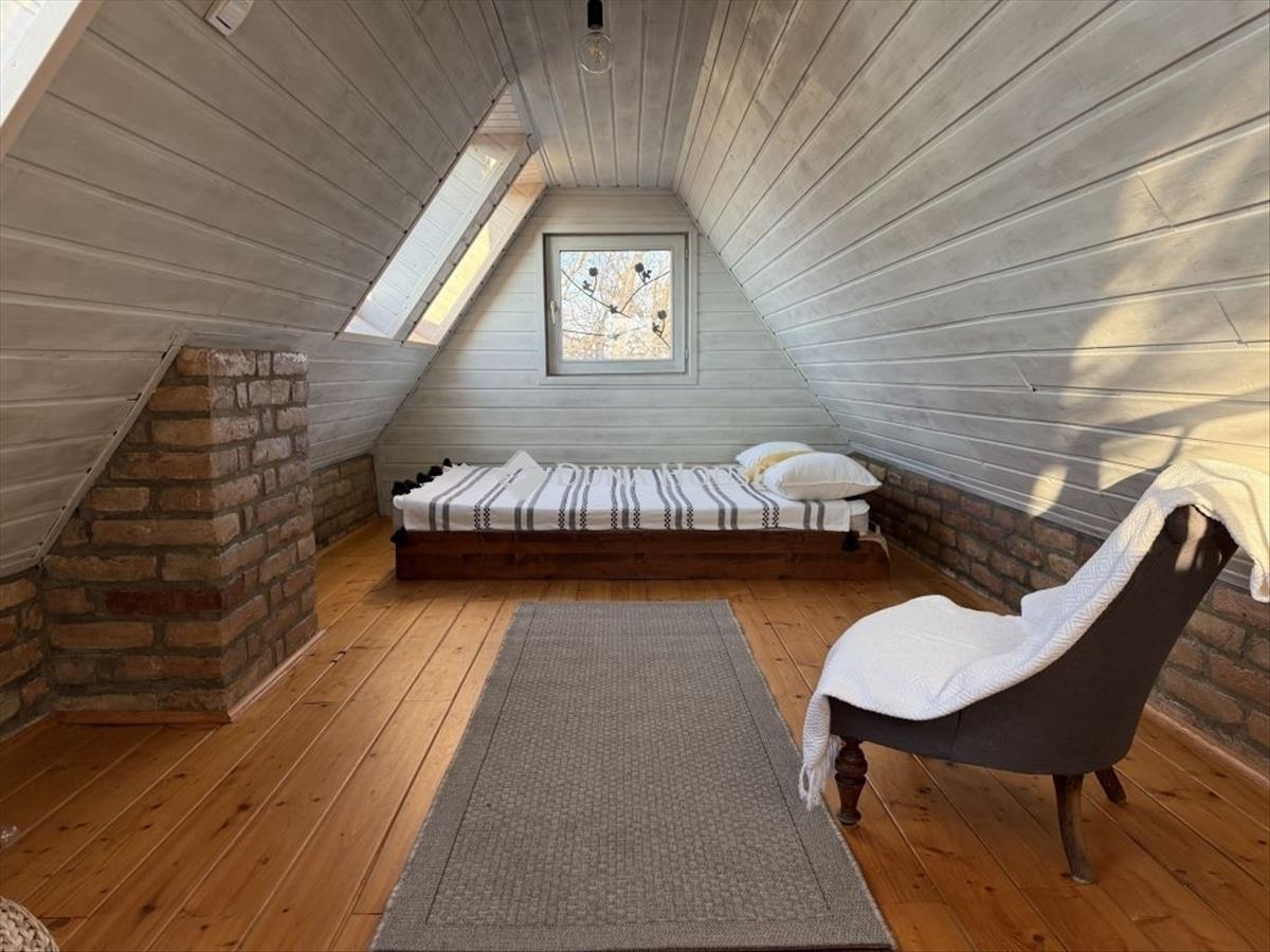 A földszinten előtér, konyha - étkező, szoba, fürdőszoba, a tetőtérben hálószoba került kialakításra és az épületből lehet megközelíteni a pincét is, ahol a víztisztítók, egy víztartály és a villanybojler lettek elhelyezve, és még tárolásra is maradt hely.