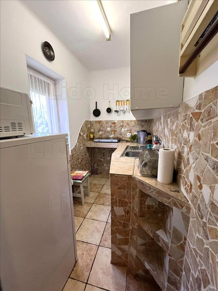 - Előtérből nyílnak a nyaraló helyiségei: közlekedő, konyha, nappali-étkező, szoba, fürdőszoba