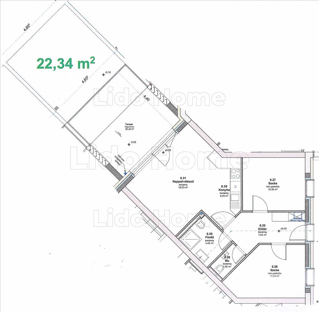 -saját, 22, 34 m2 területű kertrész tartozik hozzá