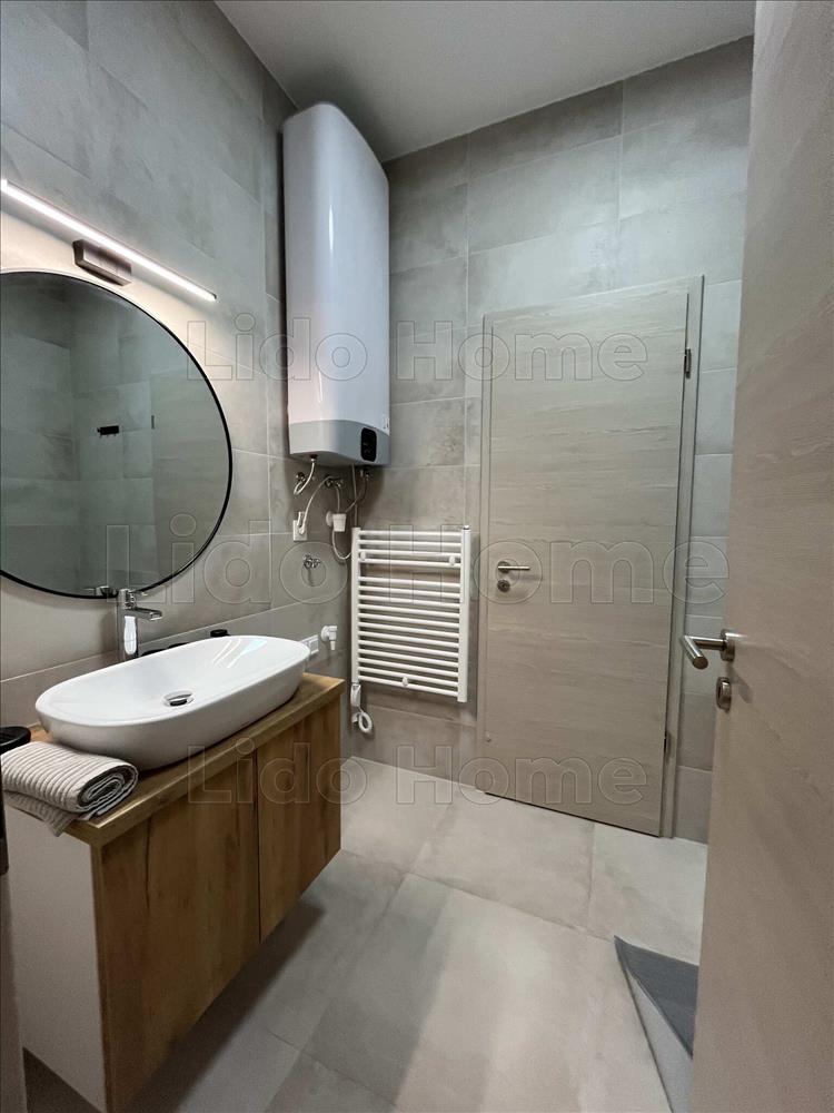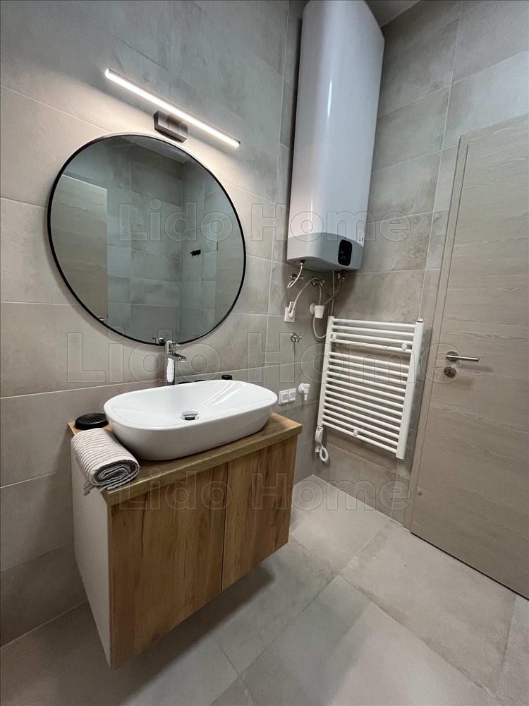 -A fürdőszoba praktikus kialakítású: az előtérből és a hálószobából nyíló bejáratról is elérhető, "átjárható"