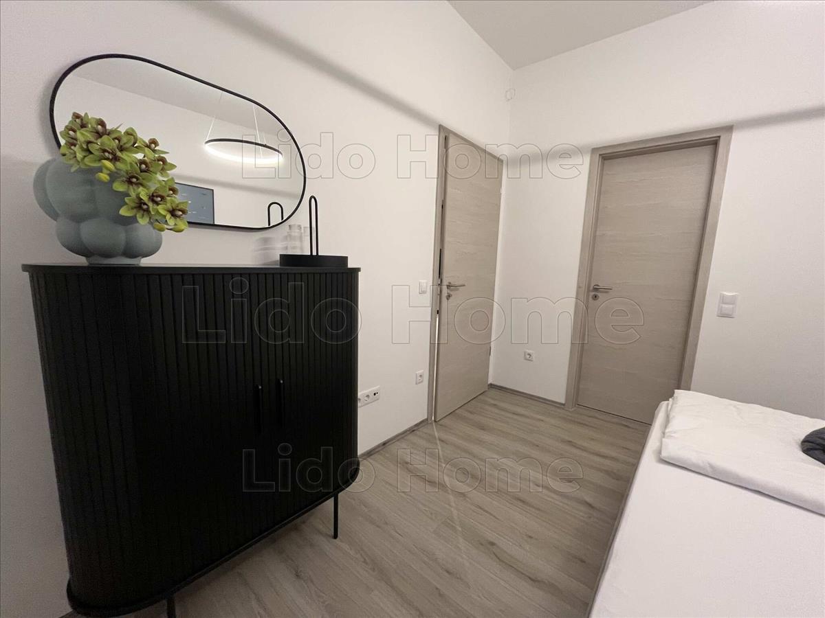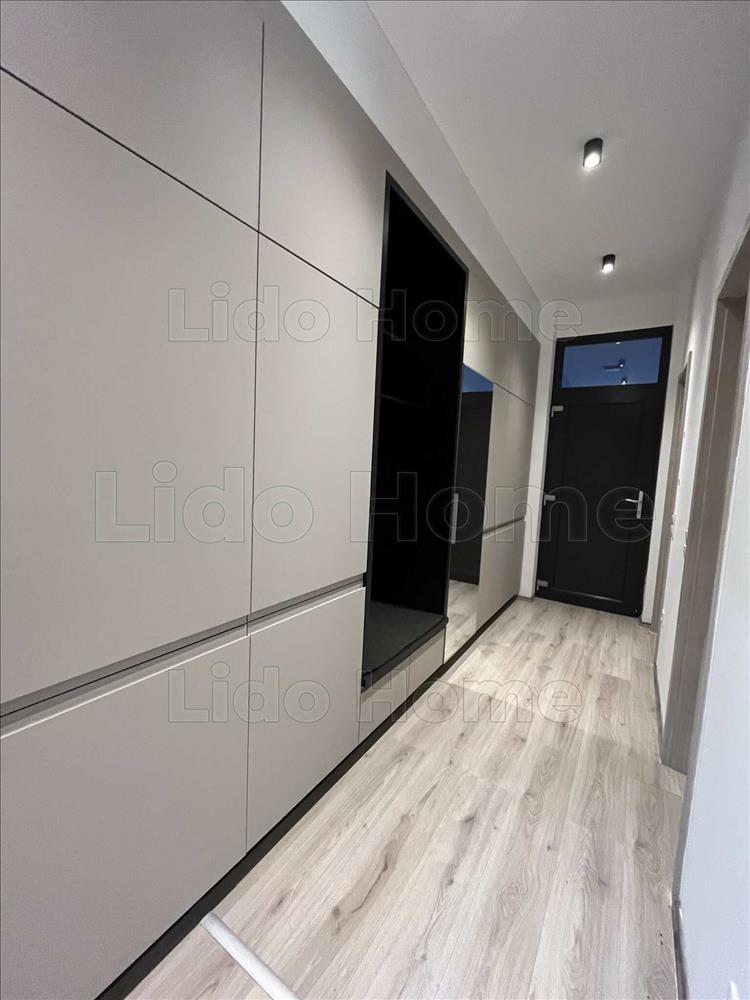 -Az előtér beépített szekrényrendszerrel, tároló elemekkel felszerelve praktikus használati funkciót biztosít a bent élőknek, a konyhabútorral megegyező típus és színválasztás kihangsúlyozza a lakás egységét.
