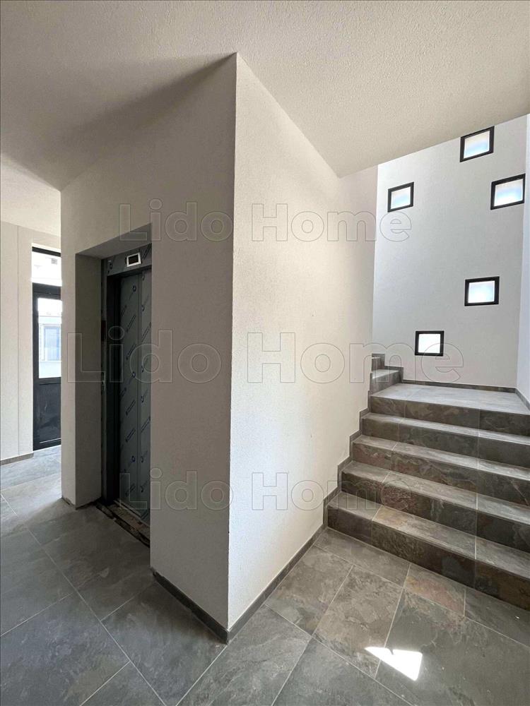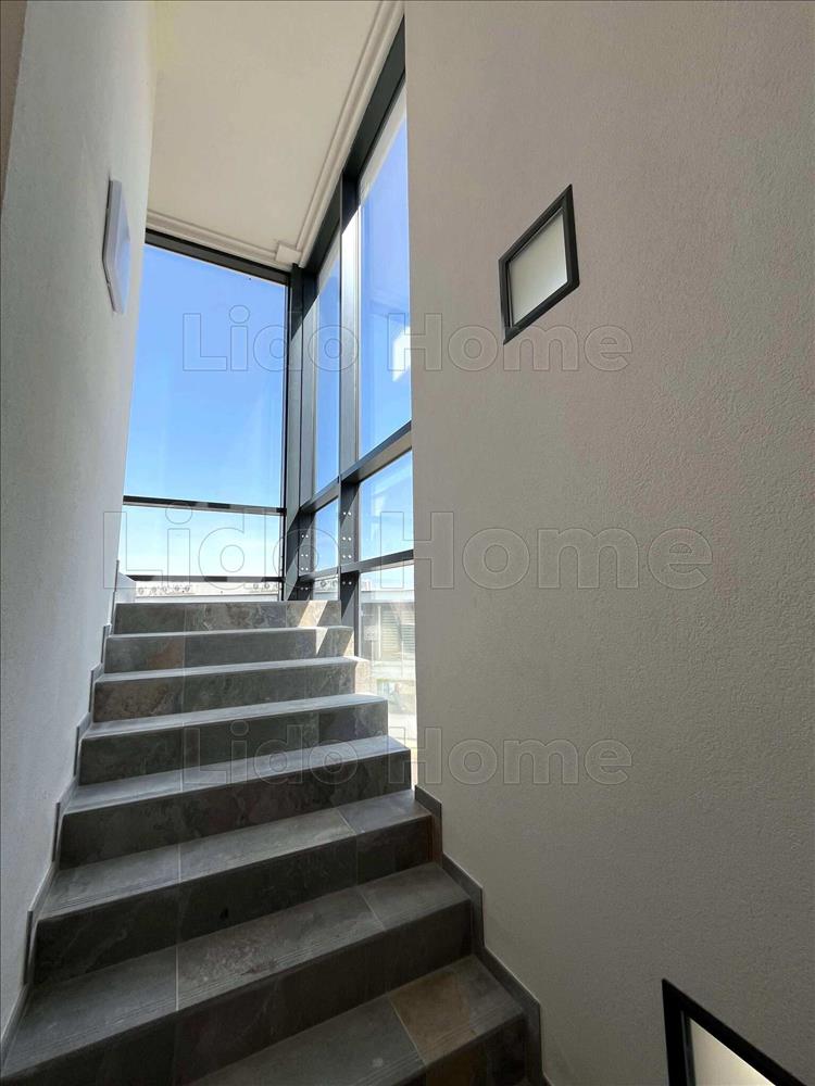 -A lépcsőháztér világos, a szél elleni védelem edzett üvegfallal biztosított, ízléses gránit lap burkolatú