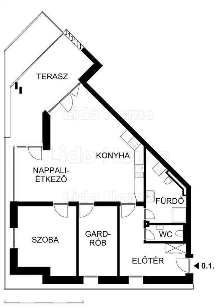 - előtér, tágas amerikai konyhás nappali, két szoba, közlekedő, fürdőszoba, külön mellékhelyiség kiosztású,