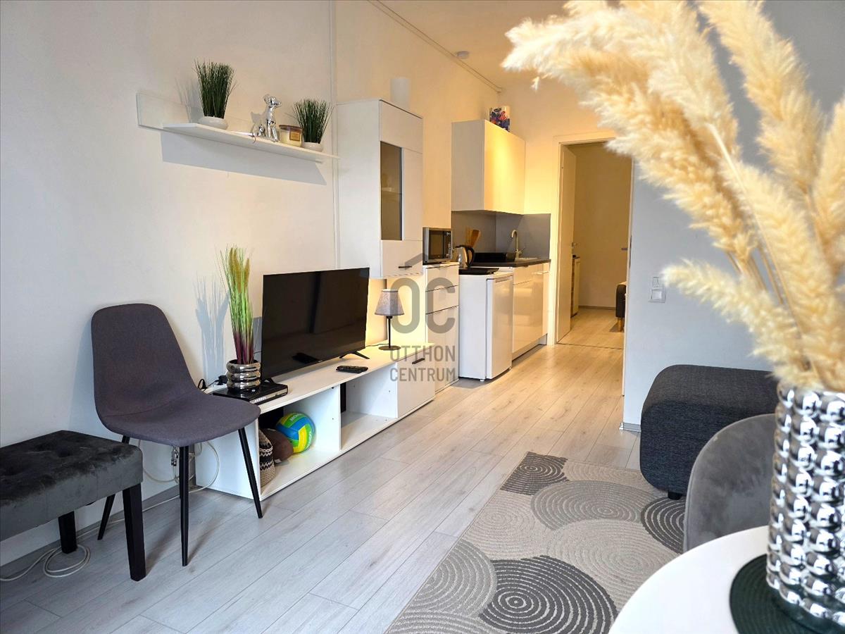 A lakás nettó 32nm, amihez egy déli tájolású, +8nm-es terasz tartozik, amely motoros napernyővel védett.