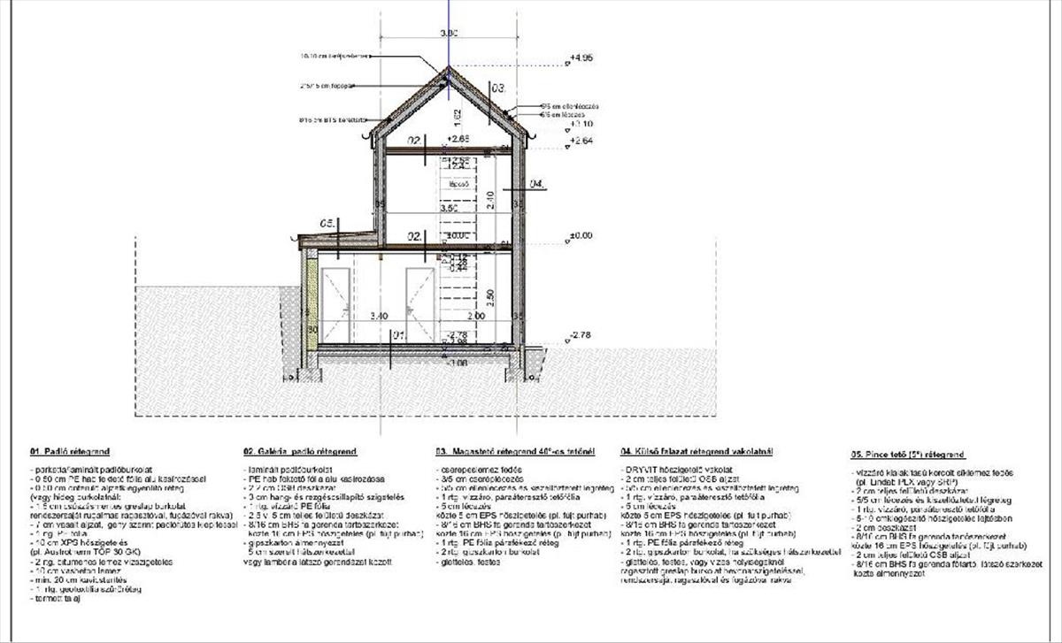 A ház háromszintes, jelenleg szerkezetkész állapotú, a tető befejezése, a homlokzati szigetelés és a nyílászárók beépítése folyamatban van.