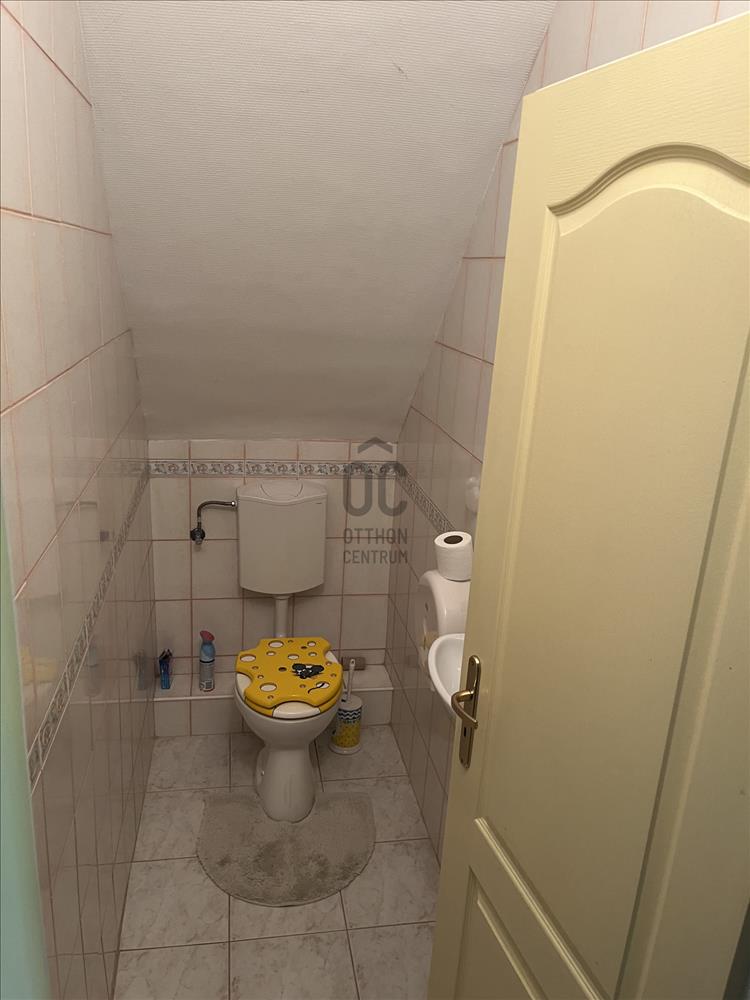 A vendégházban alul 2 szoba, egy wc, egy fürdőszoba van lent, fent pedig két kis hálószoba, ennek nettó 30 nm a területe.