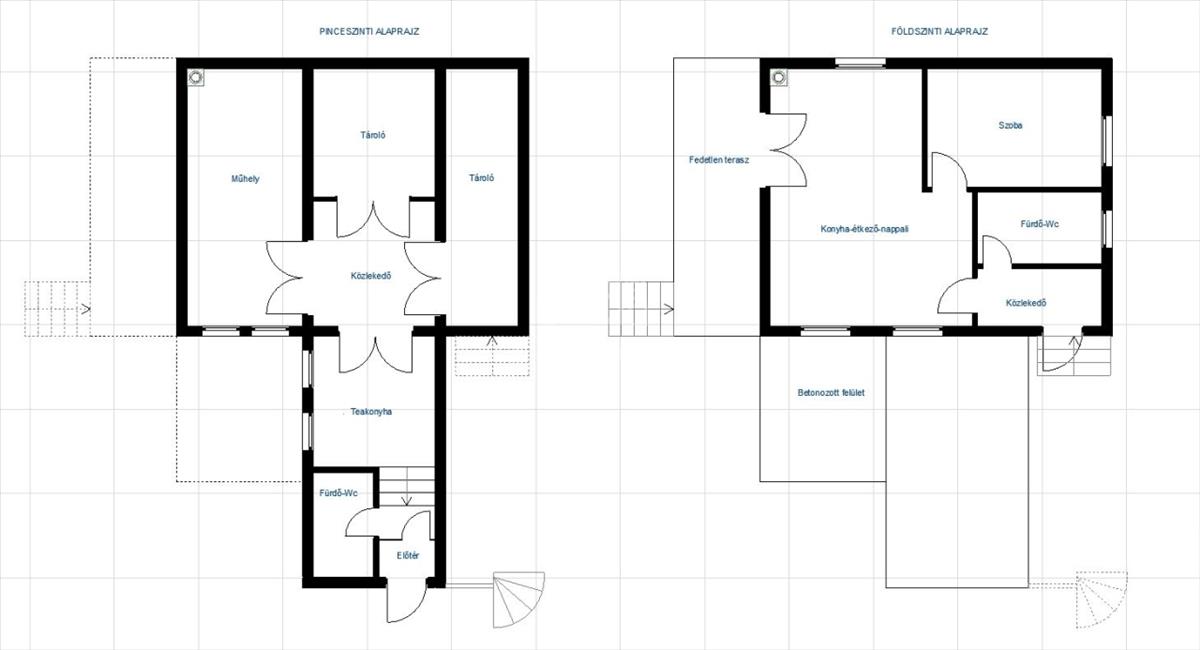 - a ház 40 m2 alapterületű, amely előtérből, konyha-nappaliból, hálószobából és fürdőszoba-WC-ből áll. Alatta pince található, amely szintén 40 m2-es, illetve a tetőtér is beépíthető.