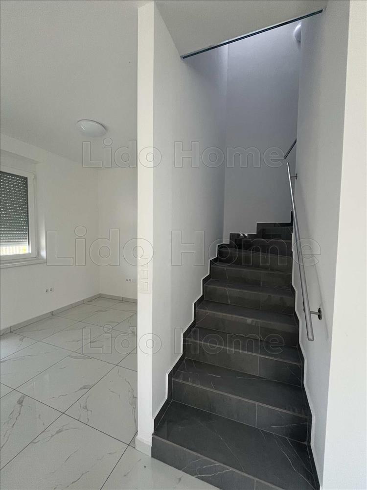 - a földszinten egy térben található az előtér, konyha, étkező és a nappali, valamint egy zuhanyzós fürdőszoba WC-vel és a lépcsőtér.