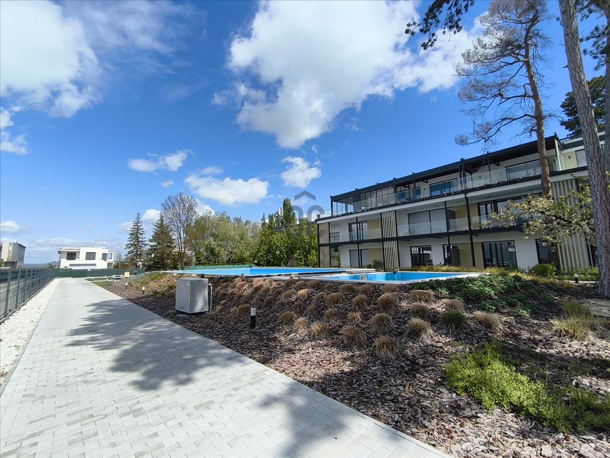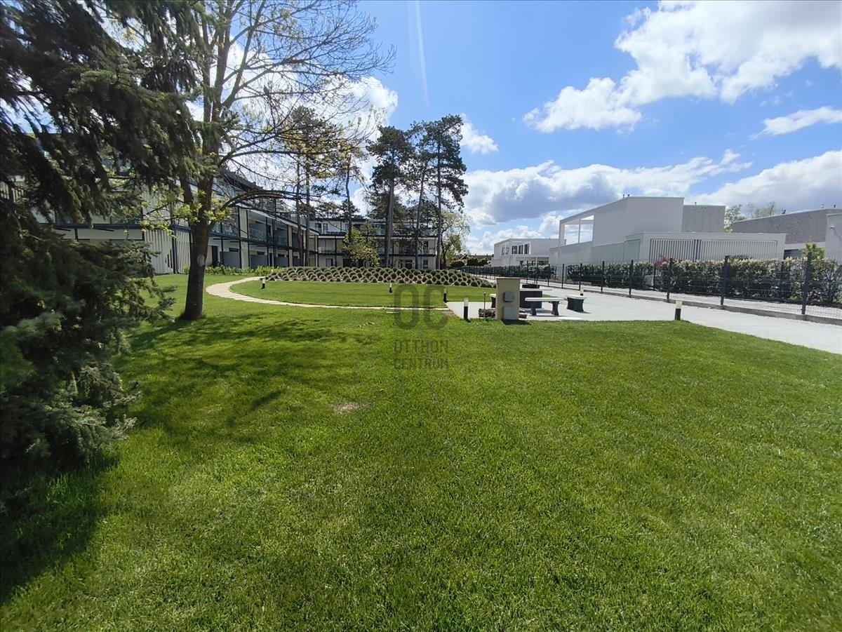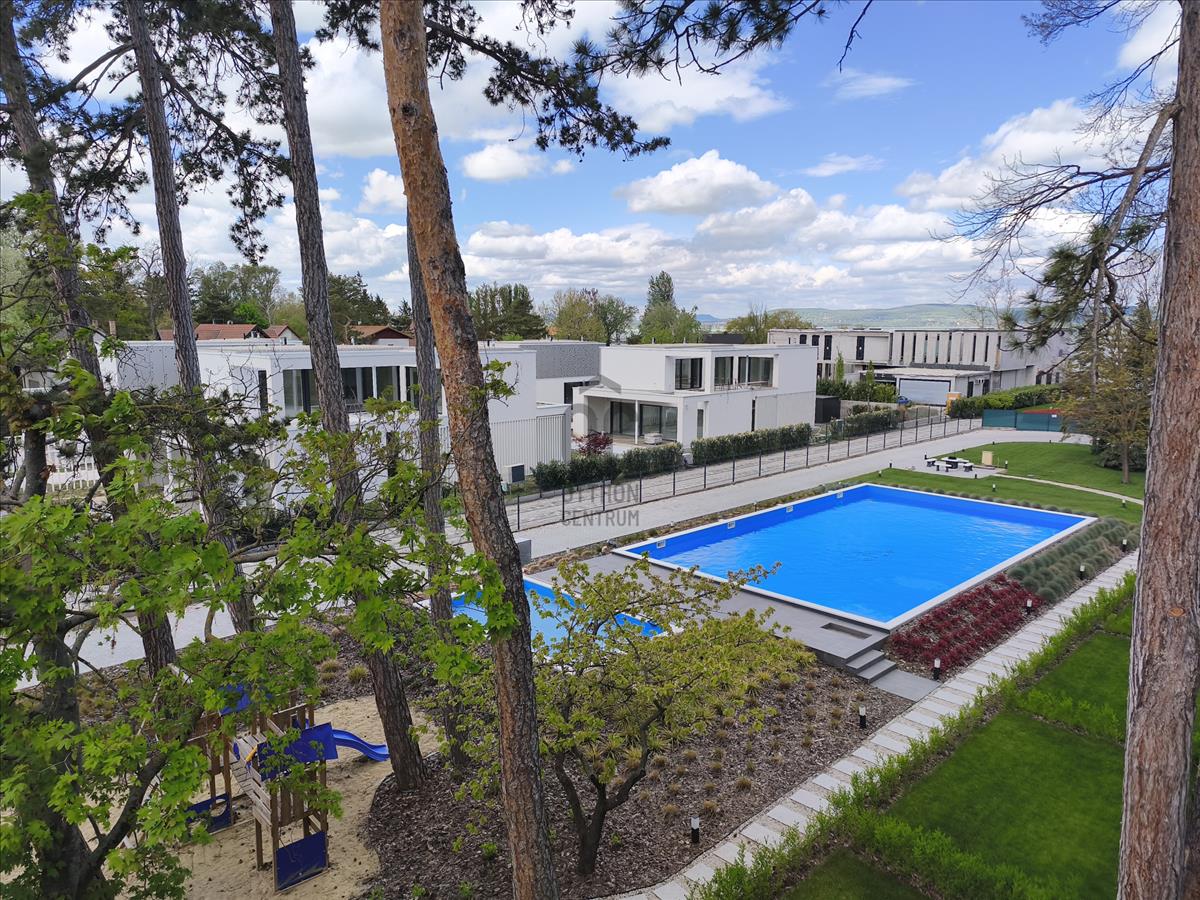 A lakás 29 lakásos, a+ energia besorolású társasházban található, a 2. emeleten, a penthouse szinten. Az épület tervezésénél a funkcionalitás mellett fő szempontok voltak az egyszerűség, az elegancia, a harmónia és a modernitás, ezek mellett a kedvező megközelítés, tájolási és panoráma adottságok kihasználása is. a lakóparkban felnőtt illetve gyermek medence is kialakításra került. Az ingatlan téglából épült, szigetelt, lapos tetős épület.