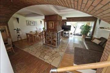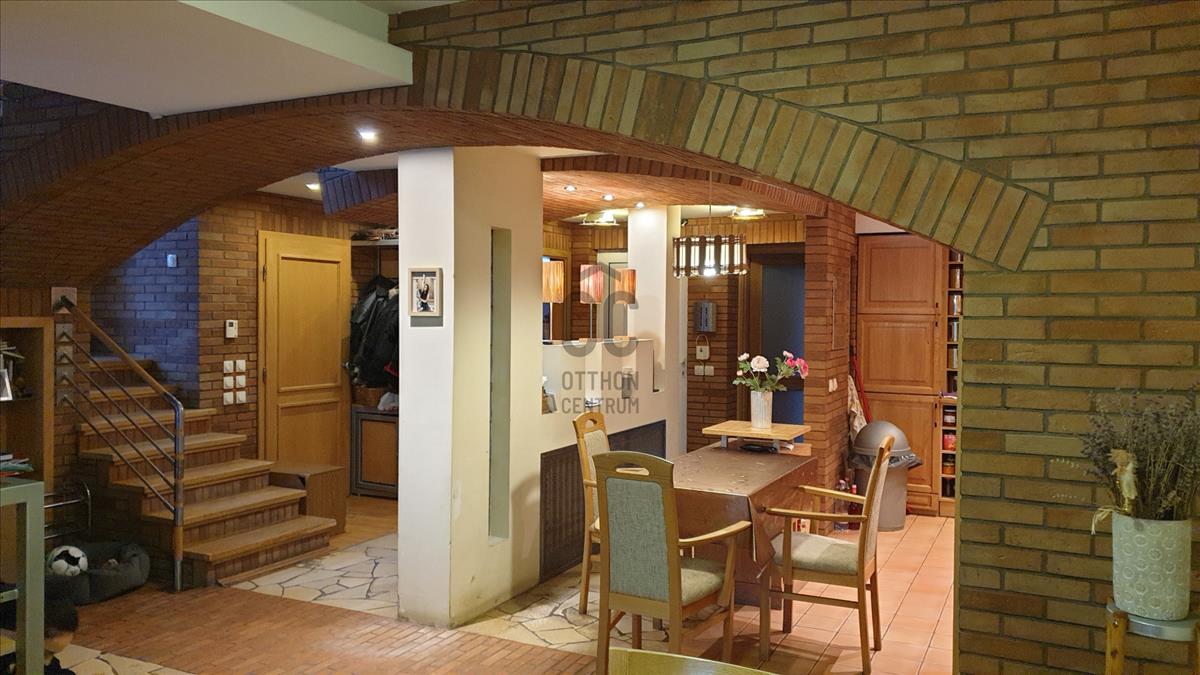 A nappaliban és a konyhában egyedileg készített téglaburkolat található, az emeletre szép falépcső vezet fel.