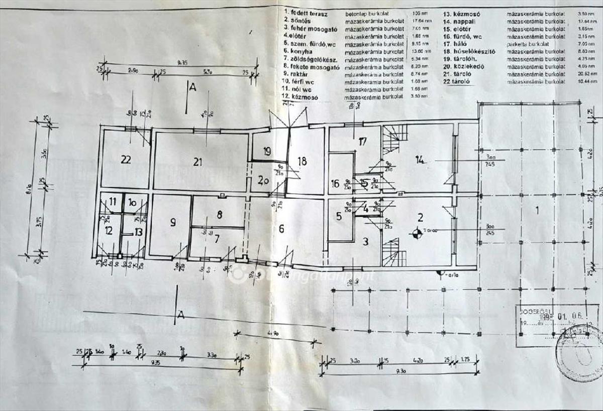 Földszintjén kiszolgáló és tároló helyiségek, egy kisebb lakás fürdővel, és 2 wc találhatók. Hozzáépítésre került még egy fedett terasz is. Tetőterében egy közös, tágas amerikaikonyhás nappaliból nyíló folyosó vezet a 6 különálló egységhez, amit "hotelszobaként" használtak: minden szobához tartozik egy zuhanyzó WC-vel. Tetőszerkezete ép: zsindellyel és a fedett terasz cseréppel fedett. a földszinti 2 db wc akadálymentesített.