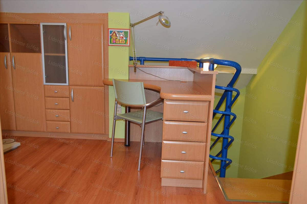 - felső szinten 2 hálószoba, kédas fürdőszoba wc-vel, előtér, - ahol egy dolgozósarok lett kialakítva