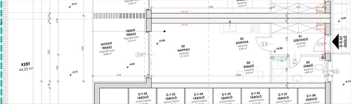 -Az üdülő (garzon) alapterülete 36, 62 m2, amelyhez 5, 7 m2 fedett és 6, 08 m2 nyitott terasz, valamint 44 m2-es kertrész tartozik