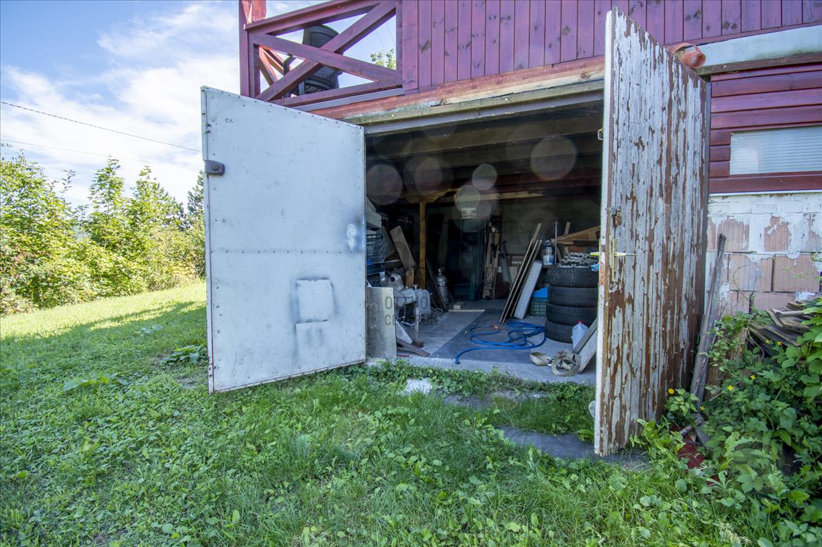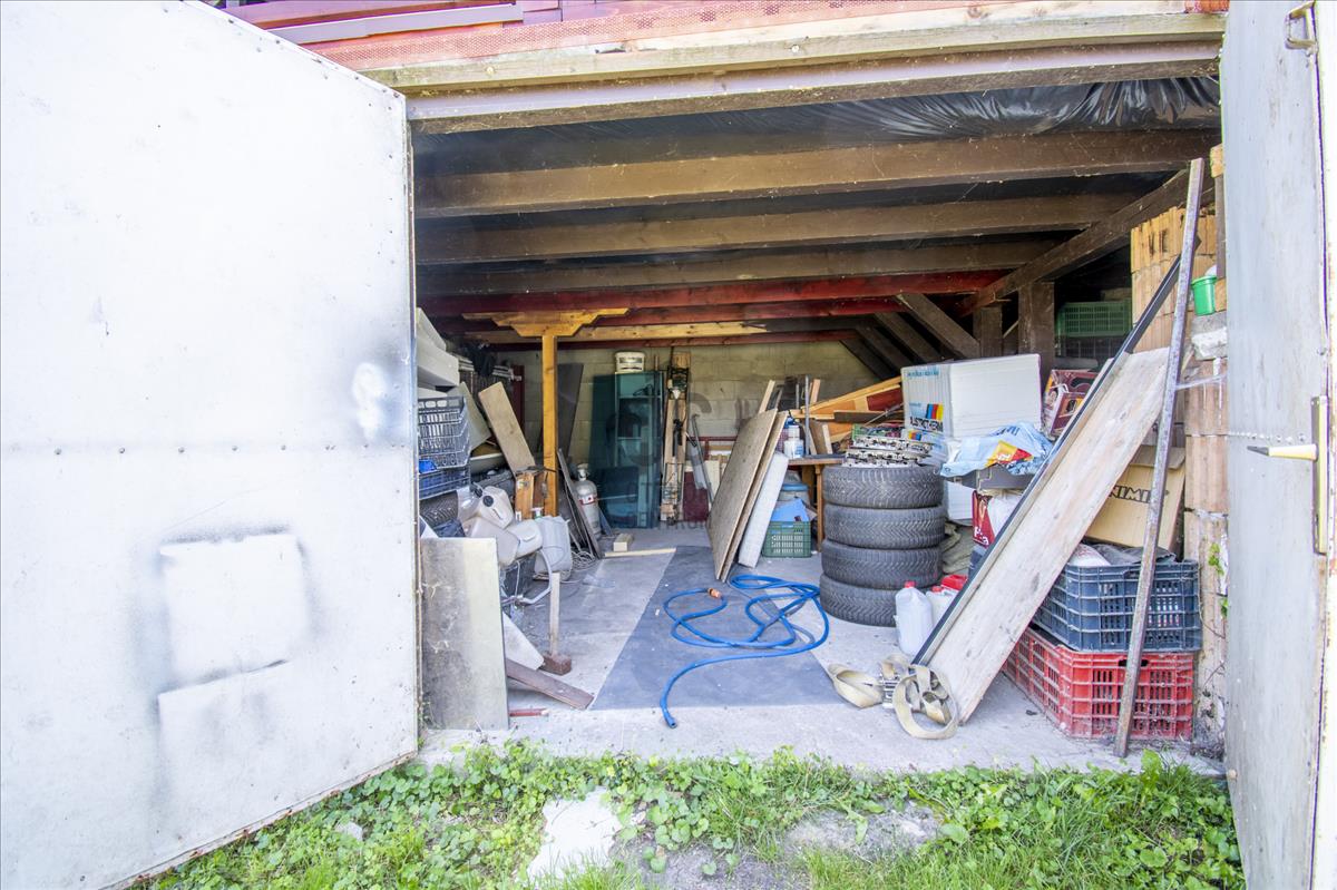 - a teraszról körbejárhatjuk a házat, a kertbe érve találhatjuk a ház alatt a garázst, egy tárolót és egy galériával ellátott tárolót, tovább haladva a kert végébe egy