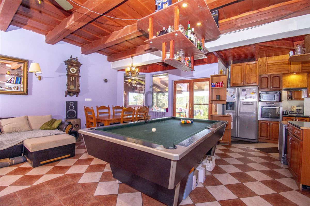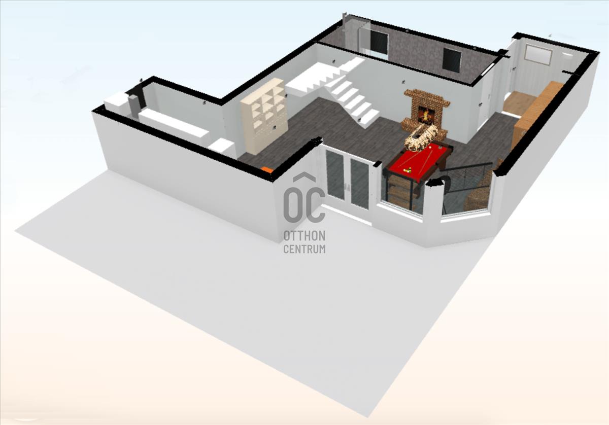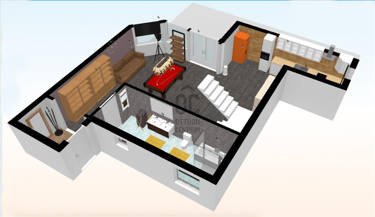 - elsőre a hatalmas nappalit konyhát látjuk meg melyben megtalálható a kandalló, oldalra nézve pedig a tágas fürdőszoba.