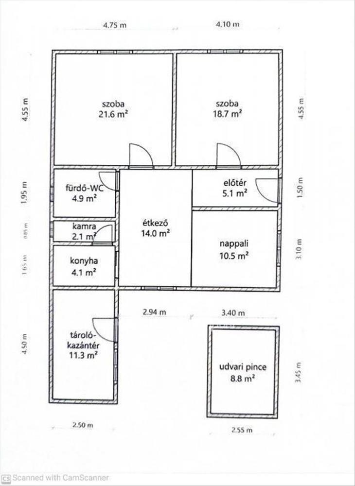 Két szoba, konyha, kamra, fürdőszoba, előtér és külön bejárattal nyári konyha részekből áll.