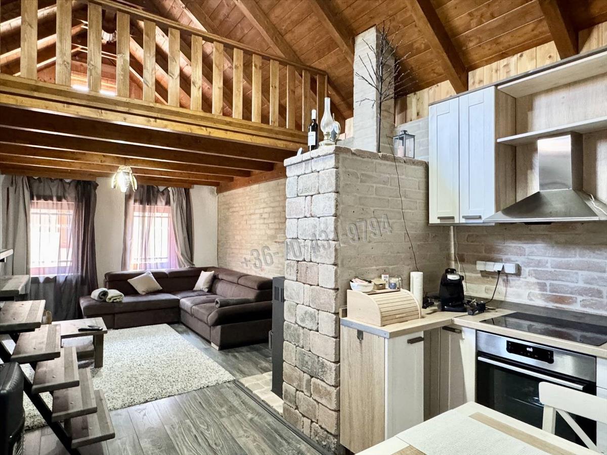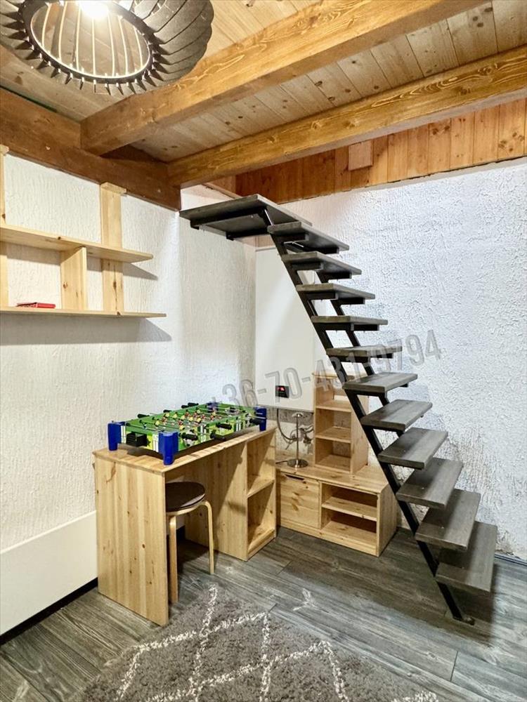 A bejárat előtti pici teraszon keresztül juthatunk be a ház előterébe, ahol nappali-étkező-konyha, 1 szoba, zuhanyzós fürdőszoba wc-vel található. a nappaliból fa lépcső vezet a galériára, ami hálószobának, dolgozónak kiváló. Innen nyílik egy hangulatos tetőterasz, ahonnan gyönyörködhetünk a csodálatos panorámában. a szoba is galériázott, így több gyermekes családok részére is jó választás.