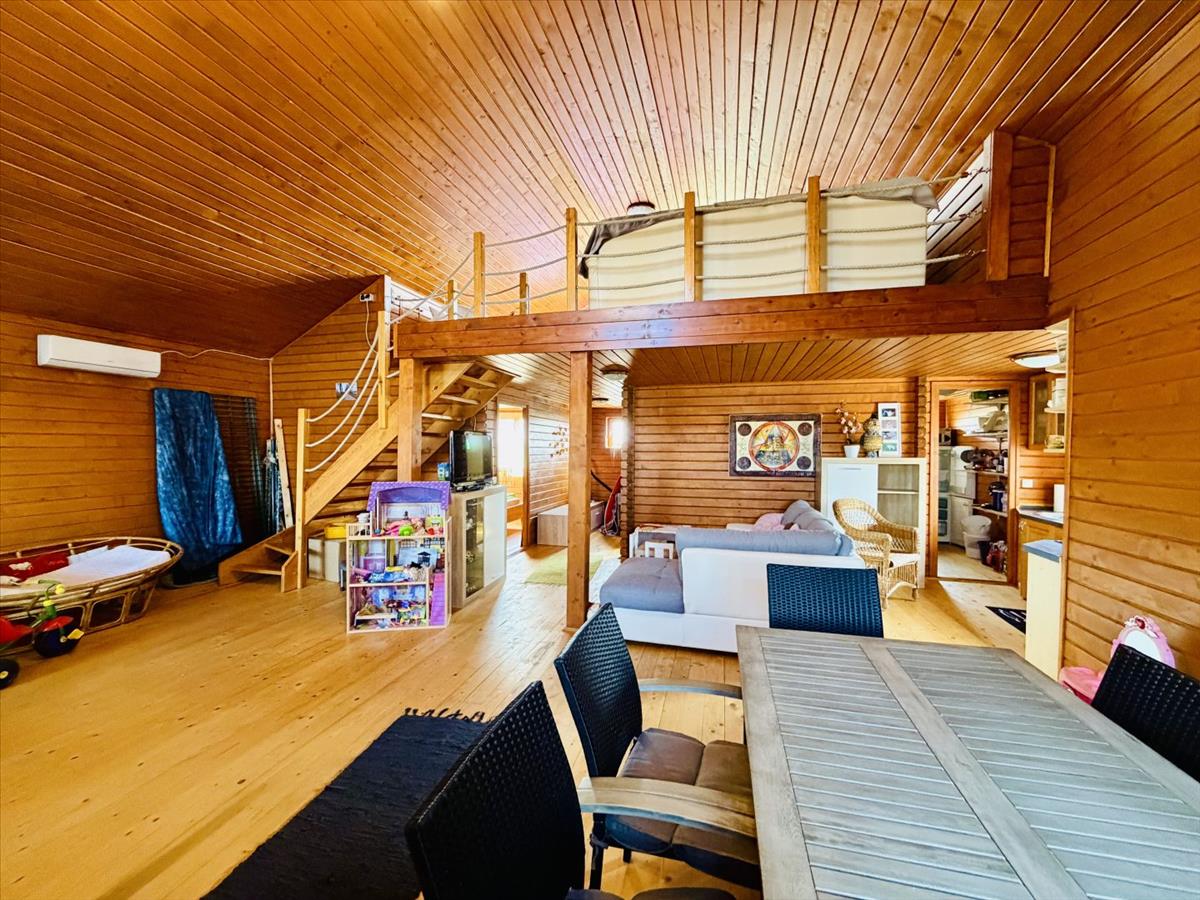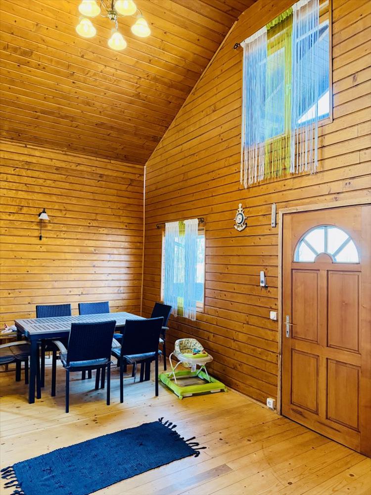A rönkház cölöpökön áll, szigetelt és belülről lambériával borított.