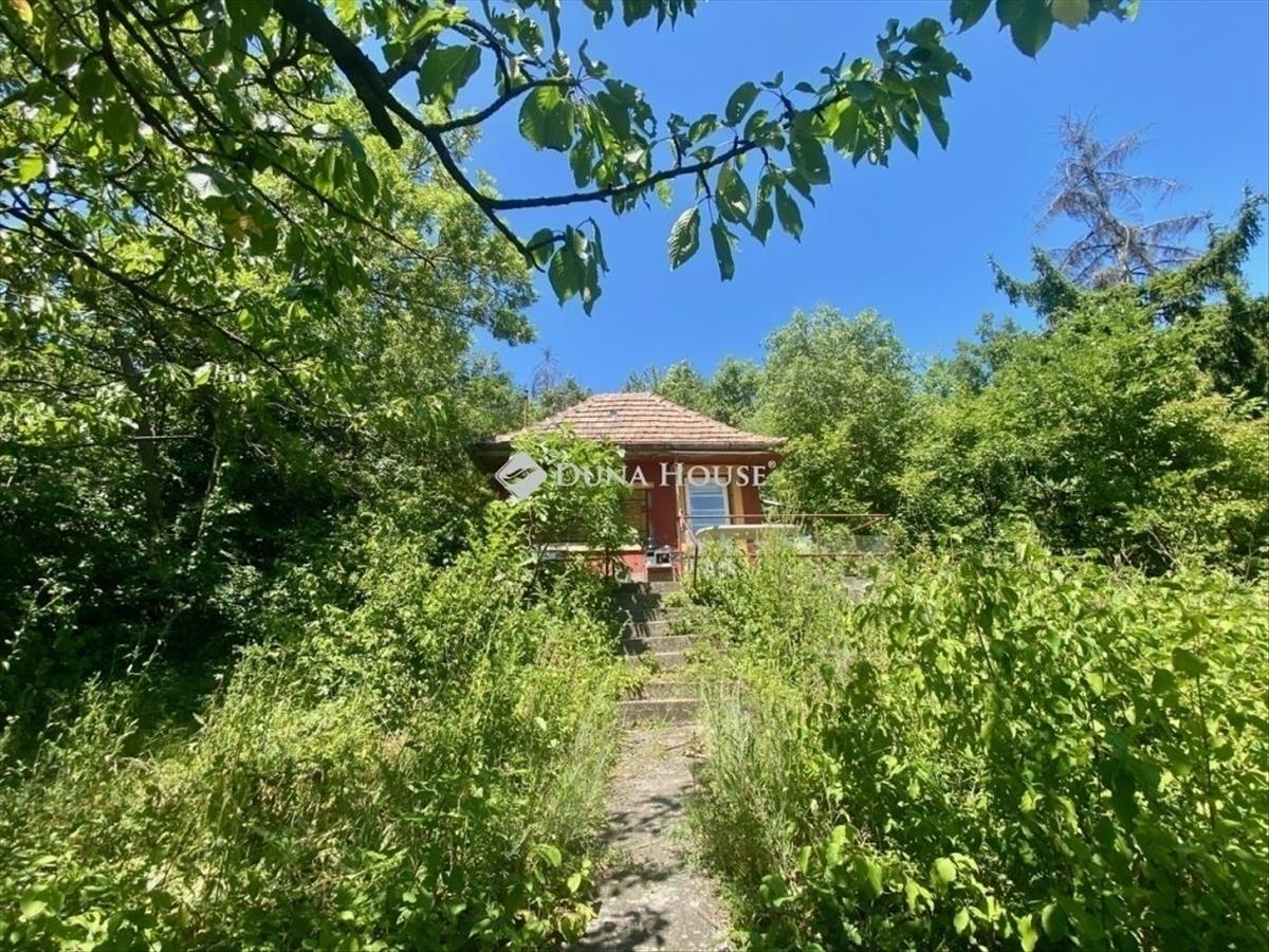 A Frankhegy tetején a Gyöngyház utcánál eladó egy 766 m2-es, lejtős, D-K-i tájolású, erdő melletti telek, felújítandó vagy bontandó kis házzal.