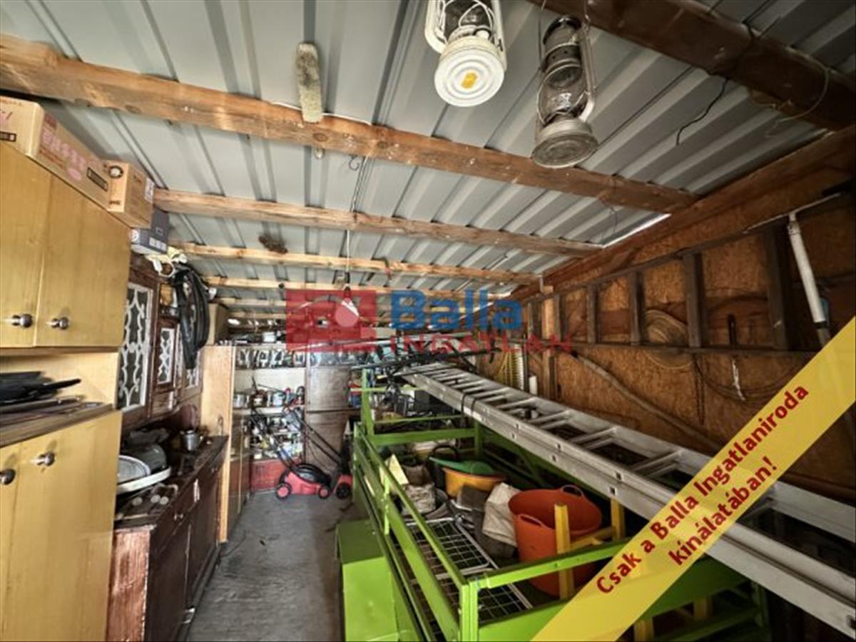 A telken a főépületen kívül garázs és további tárolóépületek is helyet kaptak, így a szerszámok és a gépjármű elhelyezése is megoldott.