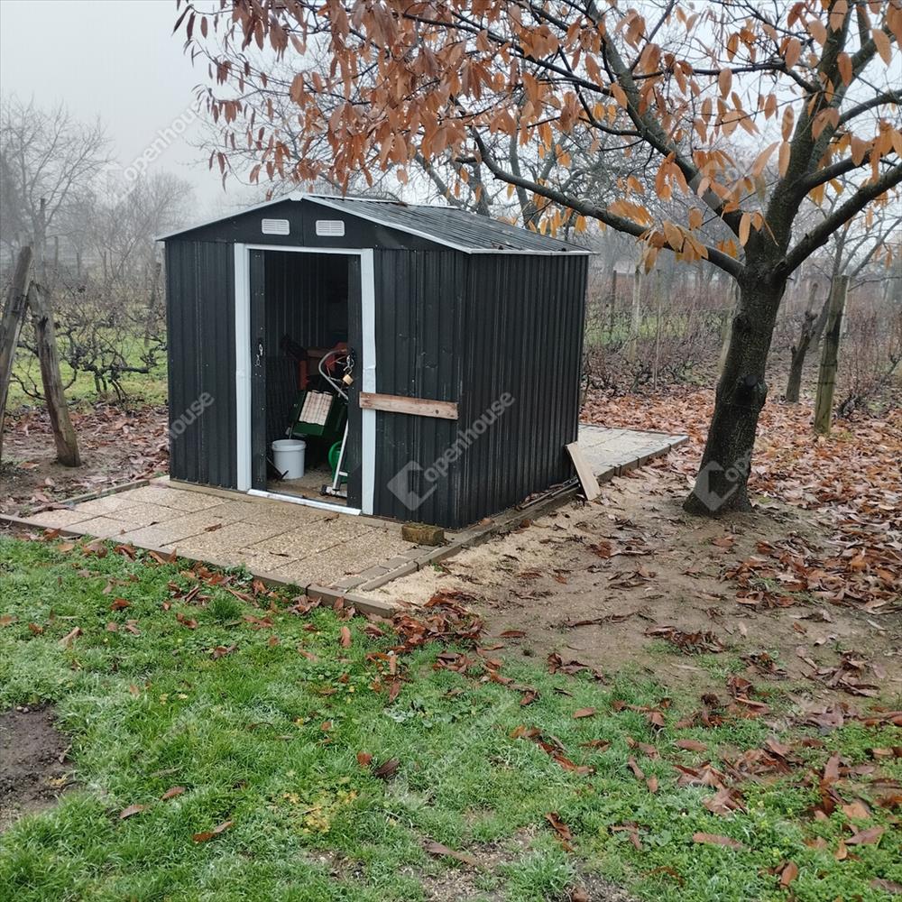 Az ingatlanon hat sor, 25 méter hosszú gondozott szőlőlugas található. a nyaraló mögött esővíztároló és egy szerszámostároló is rendelkezésre áll.