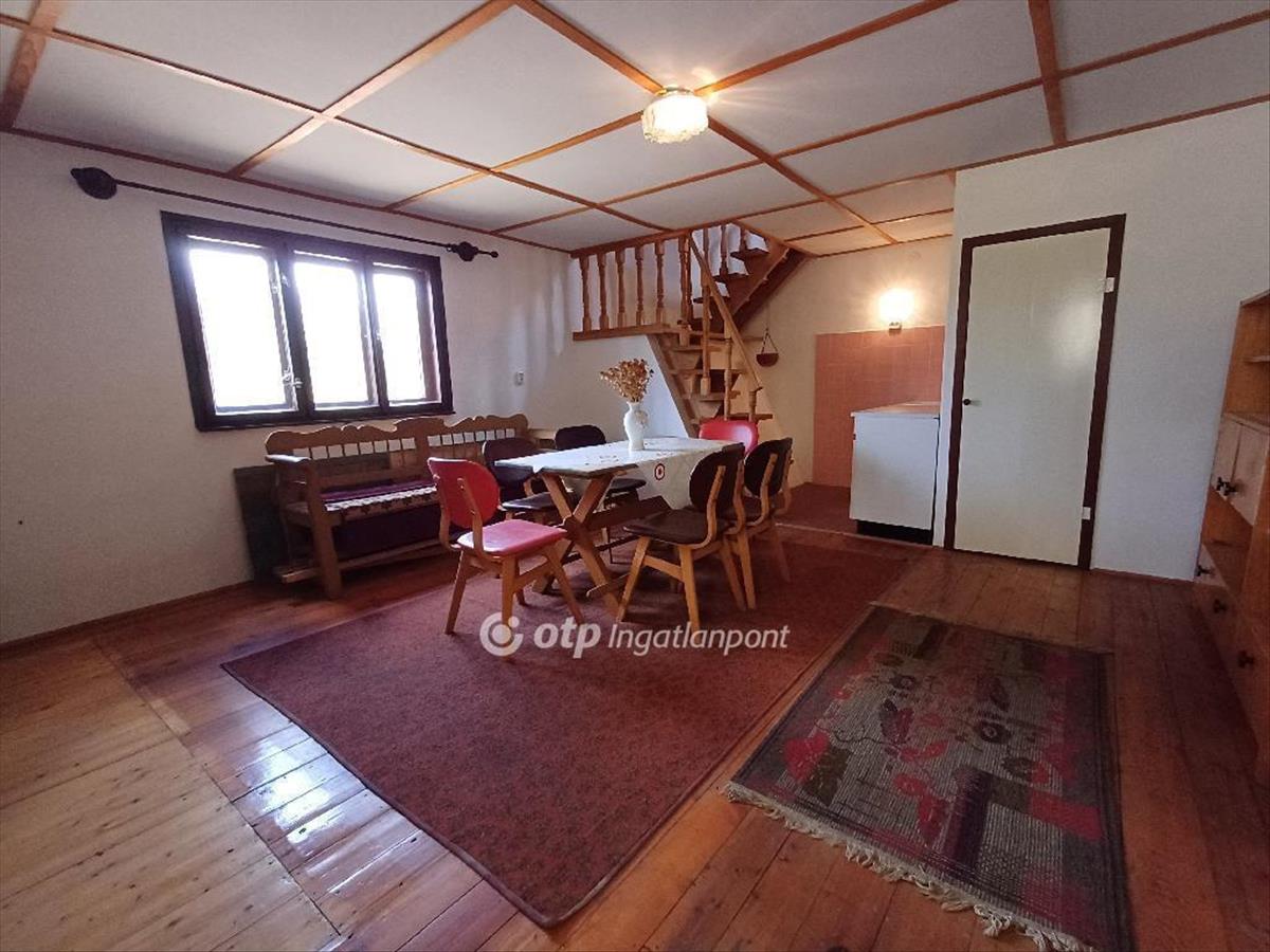 A 2158m2-es telken elhelyezkedő 3 szintes (pince (28, 8m2), földszint (30, 1m2), tetőtér 26, 8m2, melyből a 190cm feletti hasznos alapterület kb. 13m2) kiváló szerkezeti állapotú téglaépület nyaralónak, de állandó lakhatás céljára is alkalmas. a földszinten egy tágas nappali konyhasarokkal, és egy kisméretű fürdőszoba kapott helyet. a tetőtérben egy nagy légterű szoba került kialakításra, ahol a 190cm alatti területek ágyak, valamint tárolás céljából kiválóan hasznosíthatók.