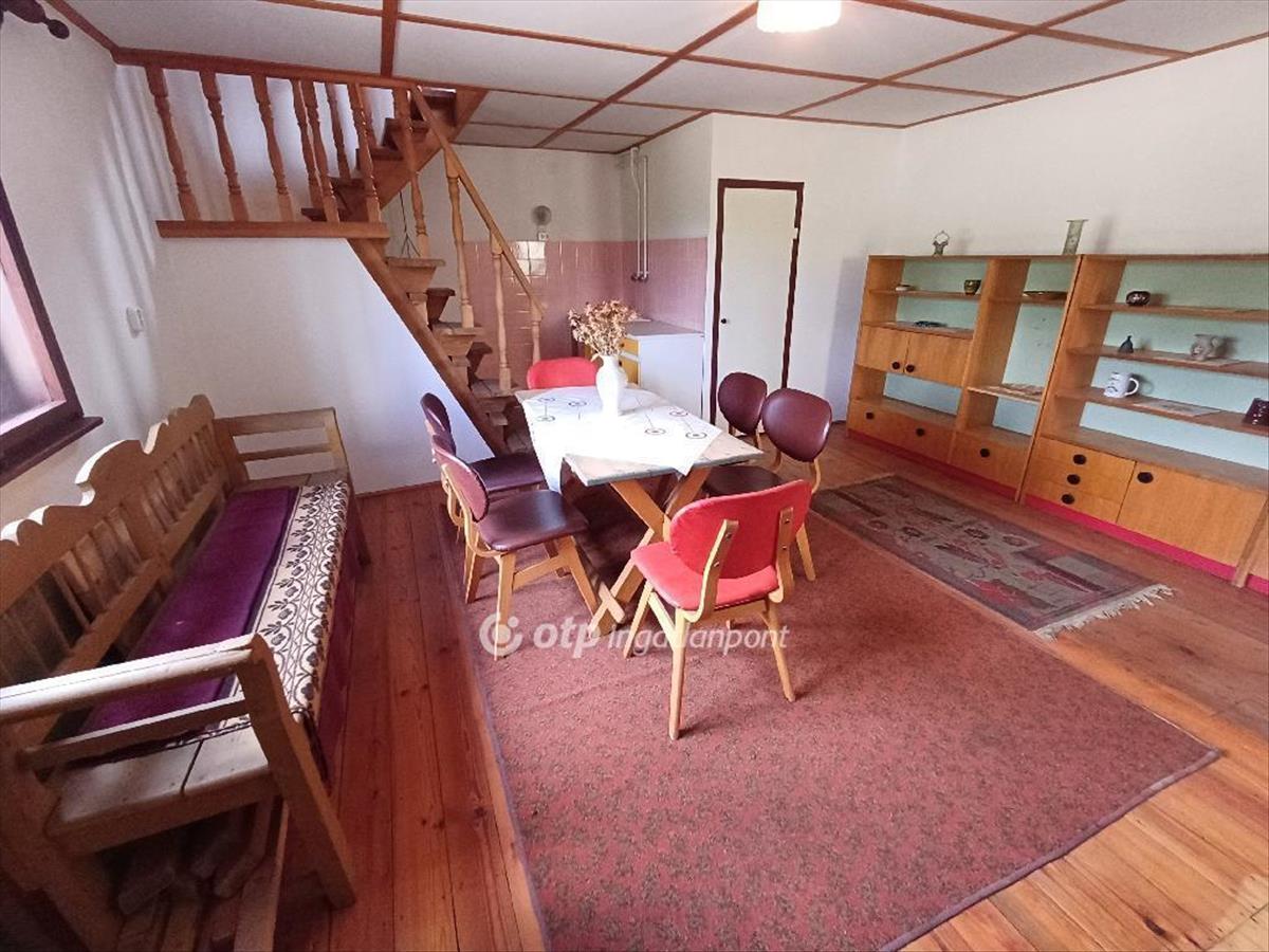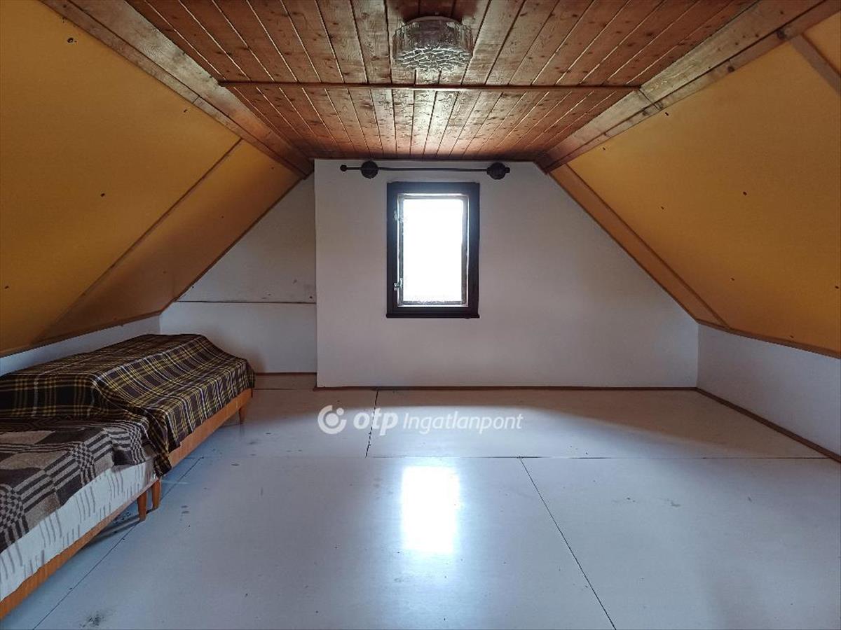 A 2158m2-es telken elhelyezkedő 3 szintes (pince (28, 8m2), földszint (30, 1m2), tetőtér 26, 8m2, melyből a 190cm feletti hasznos alapterület kb. 13m2) kiváló szerkezeti állapotú téglaépület nyaralónak, de állandó lakhatás céljára is alkalmas. a földszinten egy tágas nappali konyhasarokkal, és egy kisméretű fürdőszoba kapott helyet. a tetőtérben egy nagy légterű szoba került kialakításra, ahol a 190cm alatti területek ágyak, valamint tárolás céljából kiválóan hasznosíthatók.