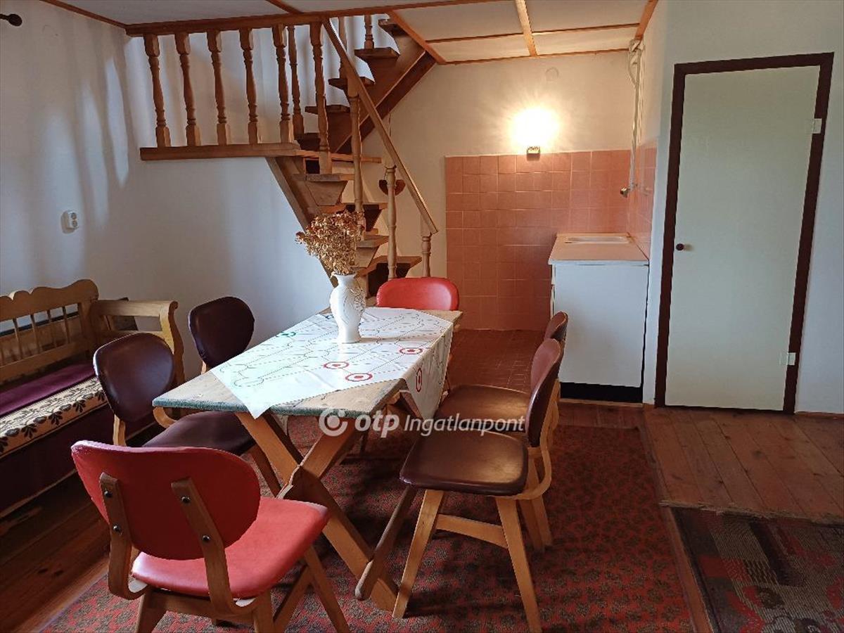 A 2158m2-es telken elhelyezkedő 3 szintes (pince (28, 8m2), földszint (30, 1m2), tetőtér 26, 8m2, melyből a 190cm feletti hasznos alapterület kb. 13m2) kiváló szerkezeti állapotú téglaépület nyaralónak, de állandó lakhatás céljára is alkalmas. a földszinten egy tágas nappali konyhasarokkal, és egy kisméretű fürdőszoba kapott helyet. a tetőtérben egy nagy légterű szoba került kialakításra, ahol a 190cm alatti területek ágyak, valamint tárolás céljából kiválóan hasznosíthatók.