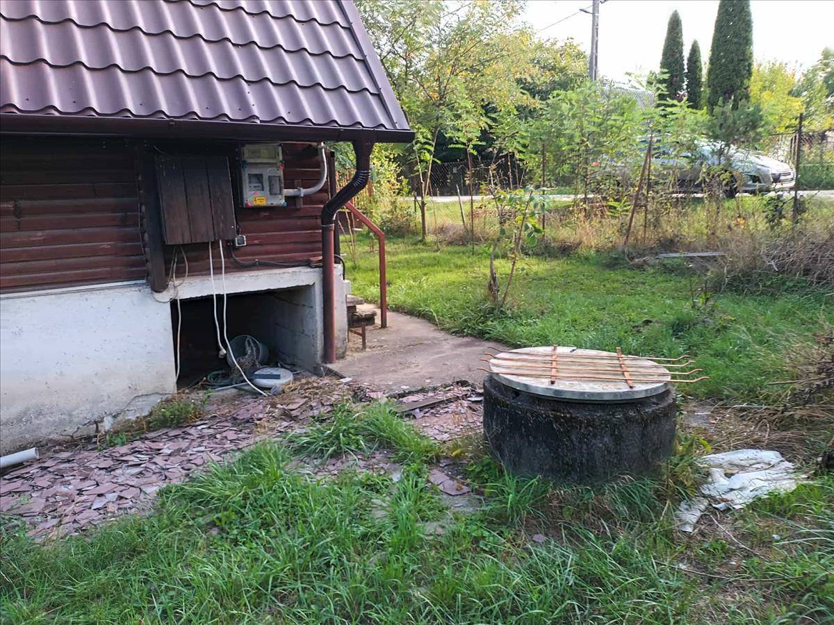 A ház alatt 35 nm-es betonozott pince található, melyből fel lehet jutni belülről is a ház alsó szintjére. Az alsó szinten első terasz és hátsó terasz, napfényes, tóra és kertre néző, nappali, konyha és fürdőszoba. a fűtés épített kandalló es elektromos. Az emeleten pedig 2 fél szoba található. a kertben egy régi épített medence, mely felújításra szorul. a ház teteje teljesen fel lett újítva. Azonnal birtokba vehető.