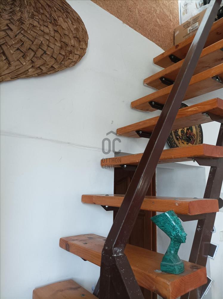A tetőtér jelenleg két részre osztott. a nappaliból vezet fel egy fa lépcsősor az erkélyes szobába. a tetőtér másik (leválasztott, de egybenyitható) részét kívűlről közelíthetjük meg, a hátsó teraszról.