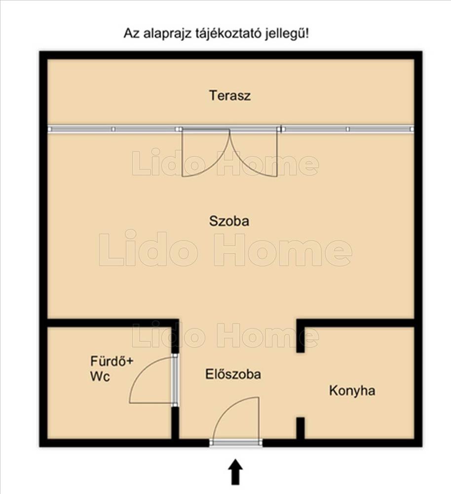 Az ingatlan praktikus elrendezésű: a bejáraton belépve az előszobába érkezünk, ahonnan jobbra a konyha, balra a fürdőszoba és wc található. Az előszobából továbbhaladva nyílik a tágas, 20 m²-es szoba, amely közvetlen kapcsolatban áll a 7 m²-es terasszal. a terasz parkosított, zöld területre néz, így kellemes, nyugodt környezetet biztosít a mindennapokhoz vagy akár a pihenéshez.