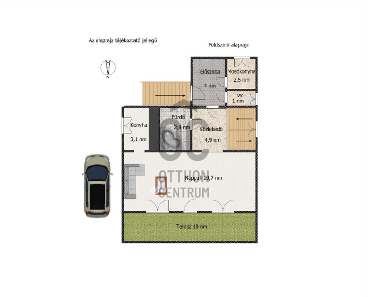- földszint (38 m2): nappali, konyha, fürdő, előszoba, mosókonyha, Wc, közlekedő, terasz