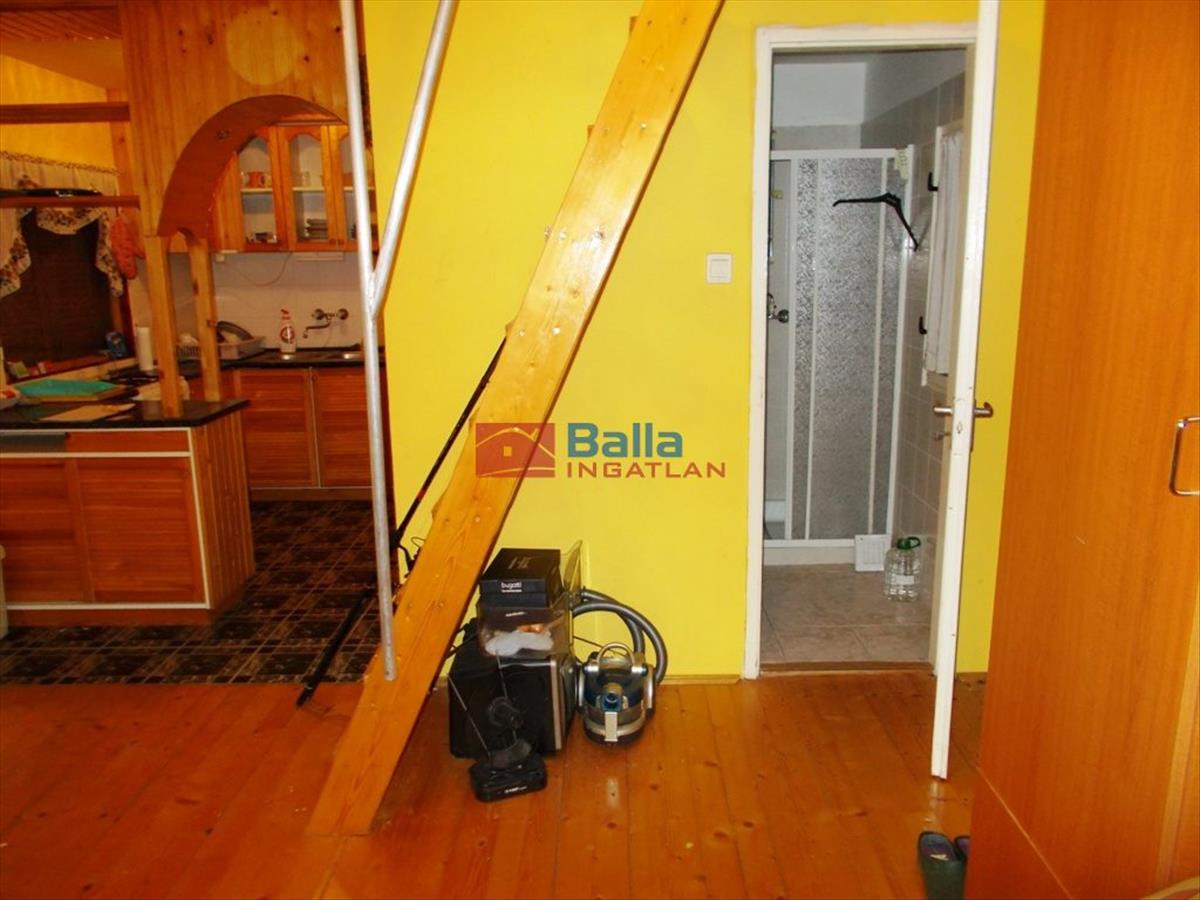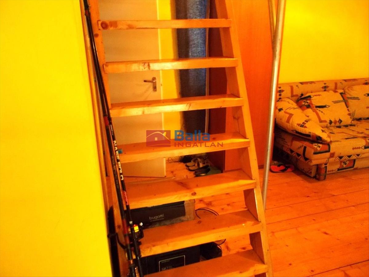 A bejárat előtt 12 m2-es fedett terasz, a házba lépve konyha+étkező+nappali, fürdőszoba+Wc. a felső szintre falépcső vezet fel, ahol egy légtérben 4 fő elhelyezésére van lehetőség.