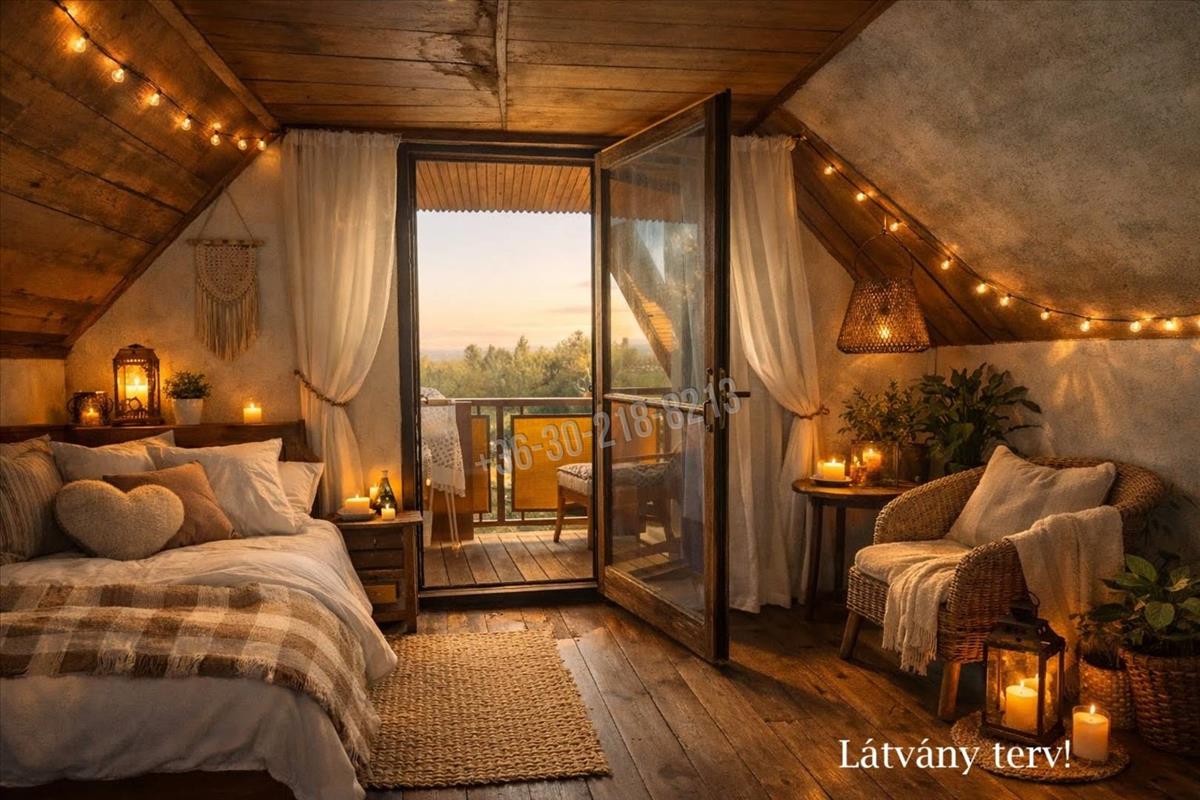 - Emeleten kis padlásszoba és a szemet gyönyörködtető egri dombság látképe fogad.