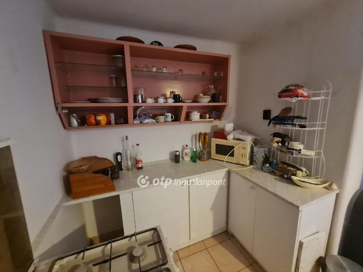 A telken egy stabil szerkezetű, két szintes kis ház áll, beton és tégla falazattal, ami már most is használható, de bőven hagy teret a tovább gondolásra. a lakószinten egy konyha és egy szobával egybenyitott élettér kapott helyet, az alsó szint pedig ideális alap egy fürdő kialakításához, ami korábban is tervben volt. a ház mellett egy beton víztároló található, az udvar vízellátását pedig fúrt kút biztosítja.